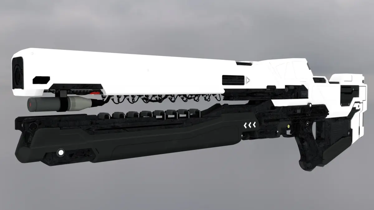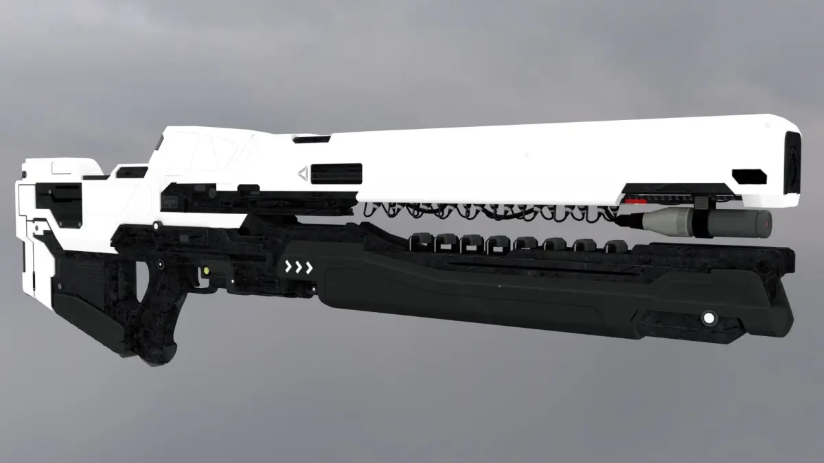 This railgun was inspired by the video game: Halo. Please note that the published model is not an exact copy of the concept art by Halo. Concept art was used mainly as inspiration.