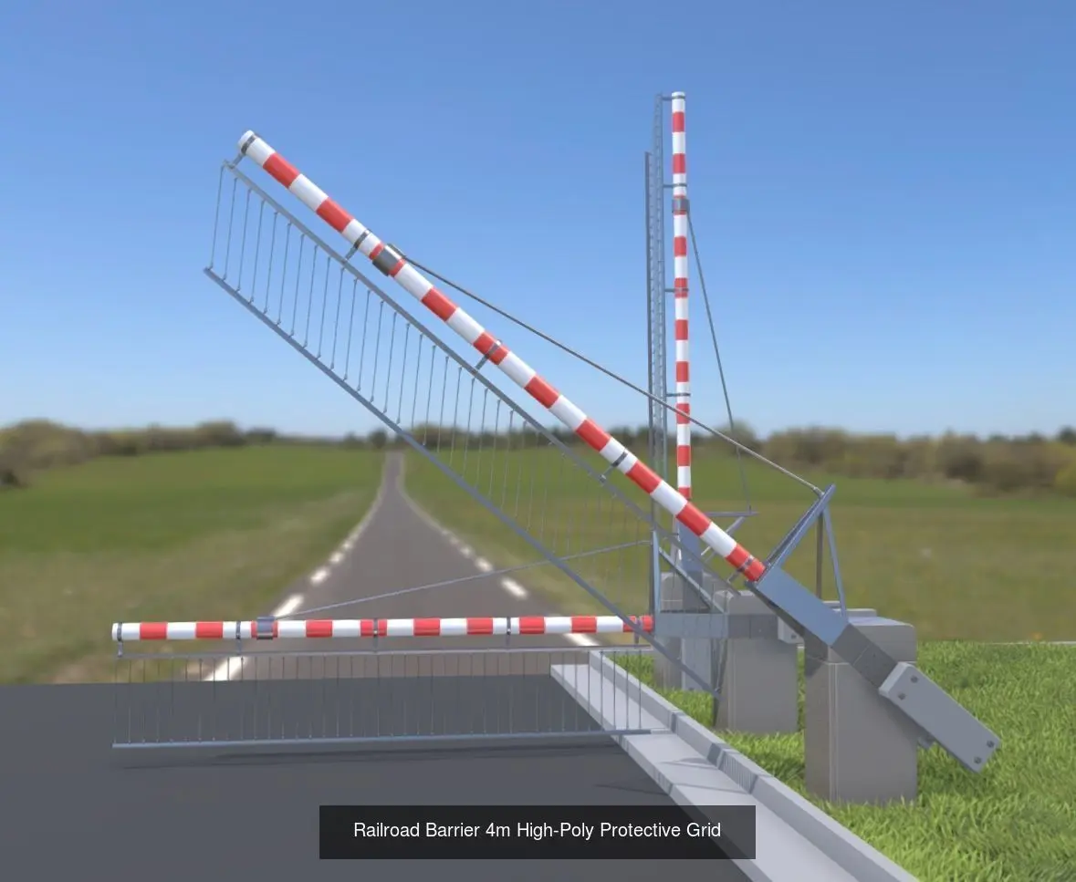 Here is the animated high-poly version of the railroad barrier with a range of 4 meters with protective grid.Also included are two non-animated versions, one with the barrier open and one with the barrier closed.Made with the Railway Barrier Construction Kit.