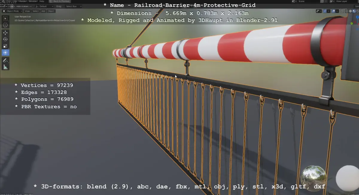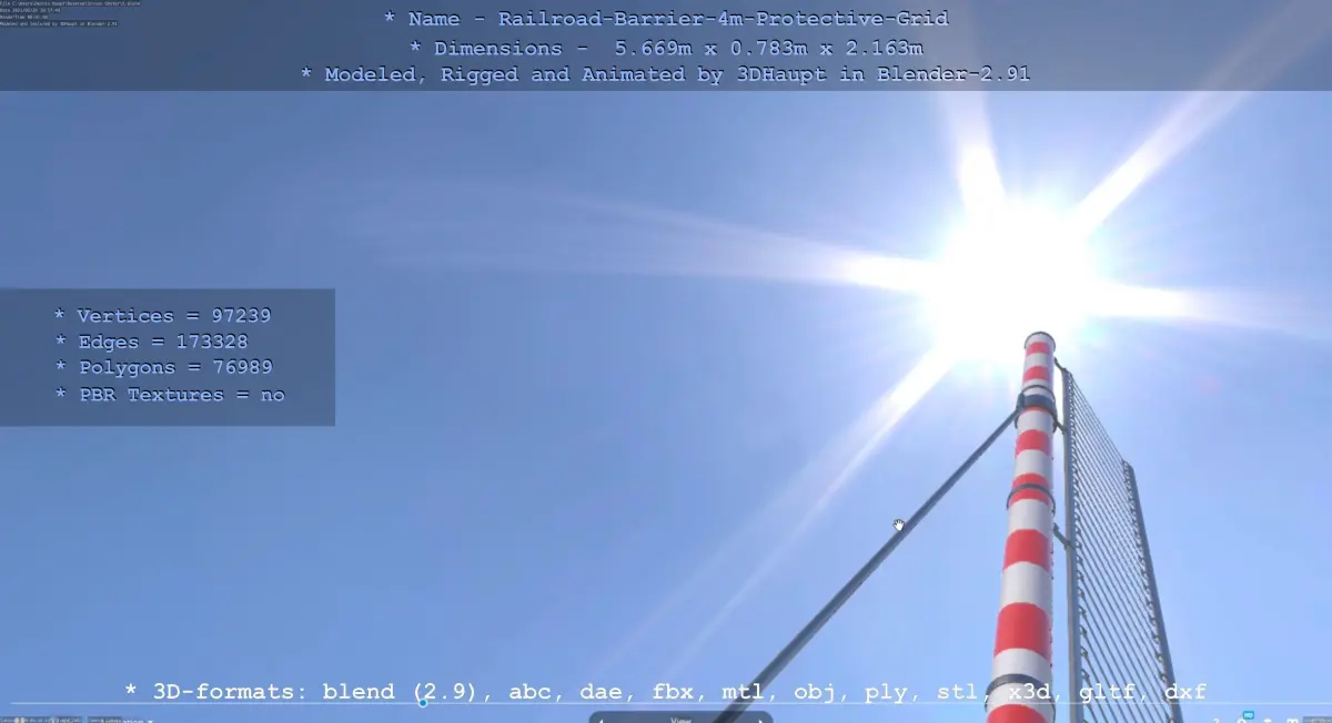 Name - Railroad-Barrier-4m-Protective-Grid-Animated Dimensions - 5.669m x 0.783m x 2.163m Polygons = 76989