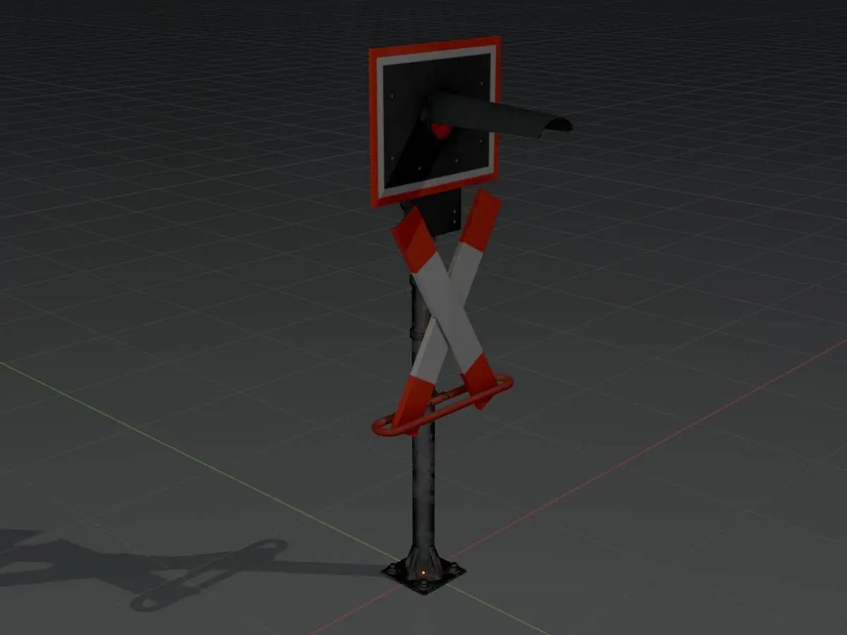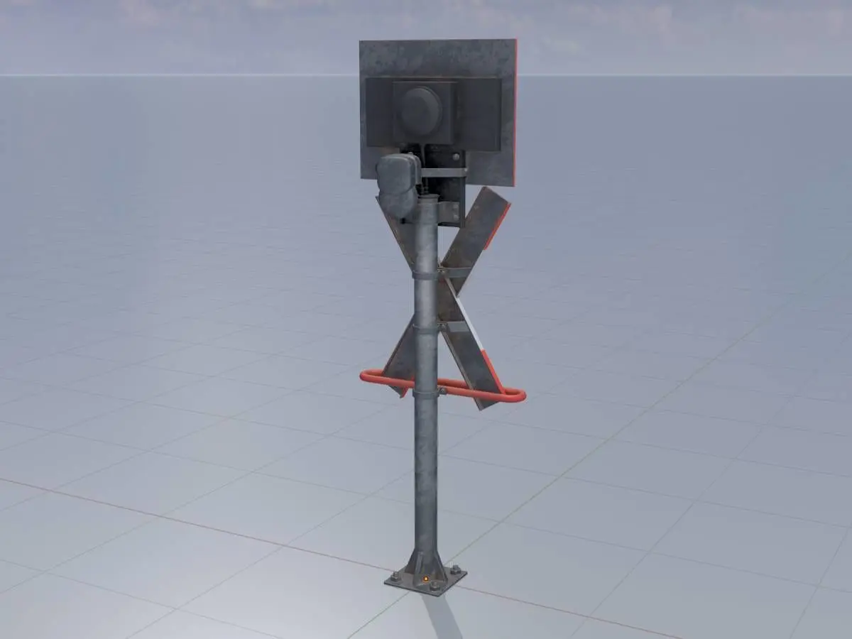 - Here you can see a 3D model of a railway crossing traffic light with integrated red flashing light.