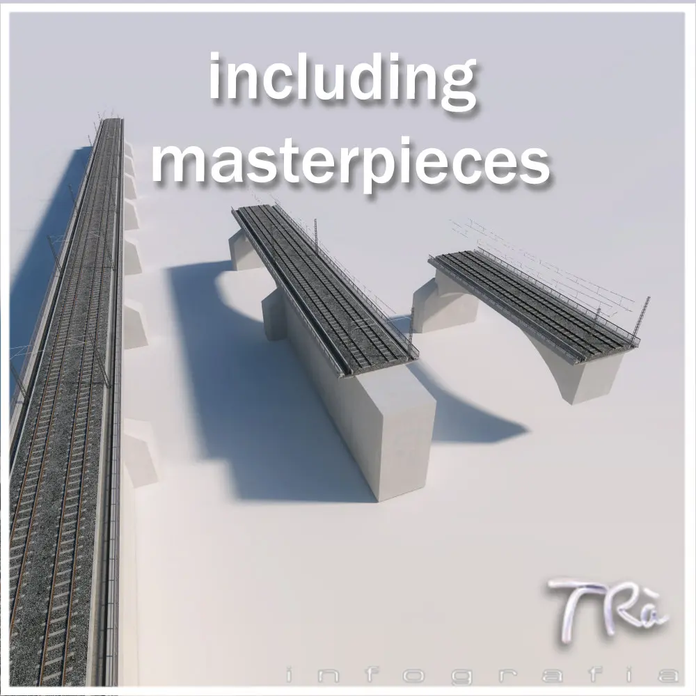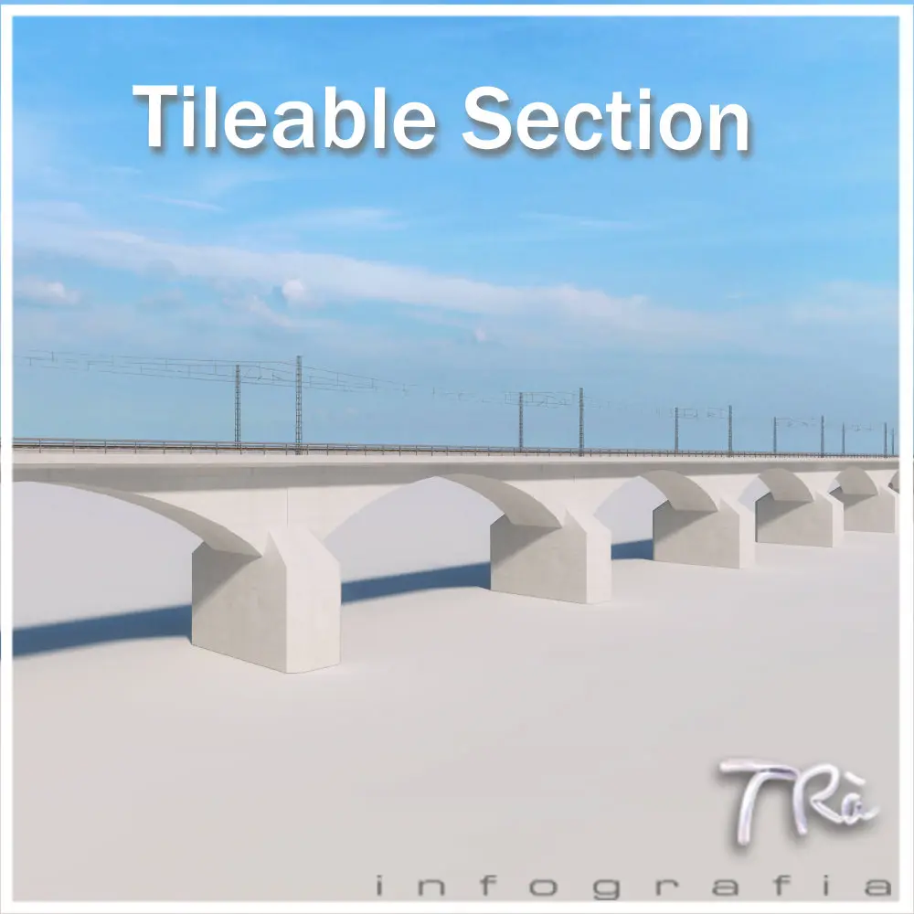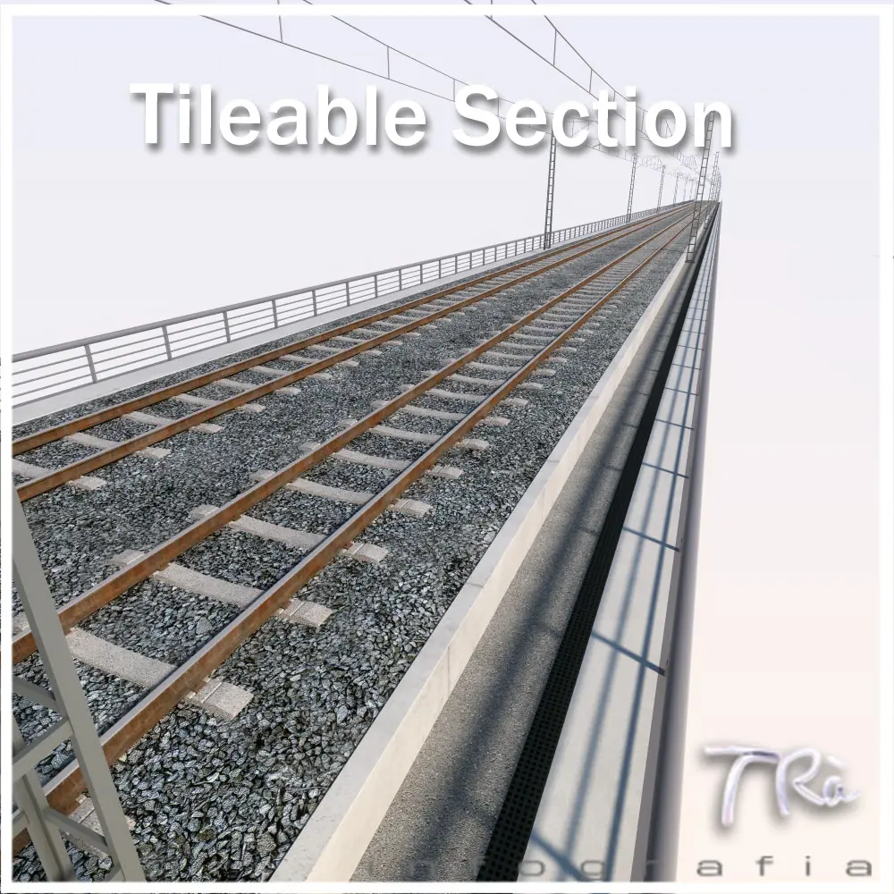 Bridge section tileable railroad tracks (along a pathdeform with a displacement of the same for the length of the section), so you can build bridges infinite and desired shape. Designed and built for horizontal bridges or with small slope in the field, modeled with Max 2010 and Vray materials. Includes materials and maps. Train not included.