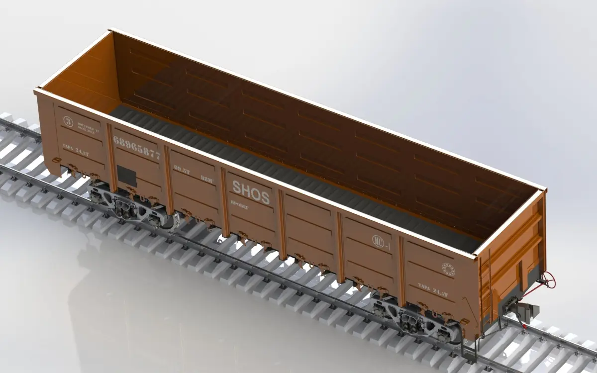 Railway Carriage 12-132 ModelCan be used for manufacturing. Model No: 12-132Car type: 4-axle with hatches in the floor without brake pad.Track width: 1520 mmAvailability of parking brake: yesConstructional speed: 120 km / hTare car (minimum): 23,5 tonsTare car (maximum): 24.5 tonsLoad capacity: 69.5 tonsVolume: 88.0 m3Maximum design static load from the wheel pair to the rails: 230.3 kNMaximum rated running load: 66.2 kN / mBase of the car: 8650 mmSpecific volume of 1.26 m3 / tNumber of unloading hatches 14 pcs.