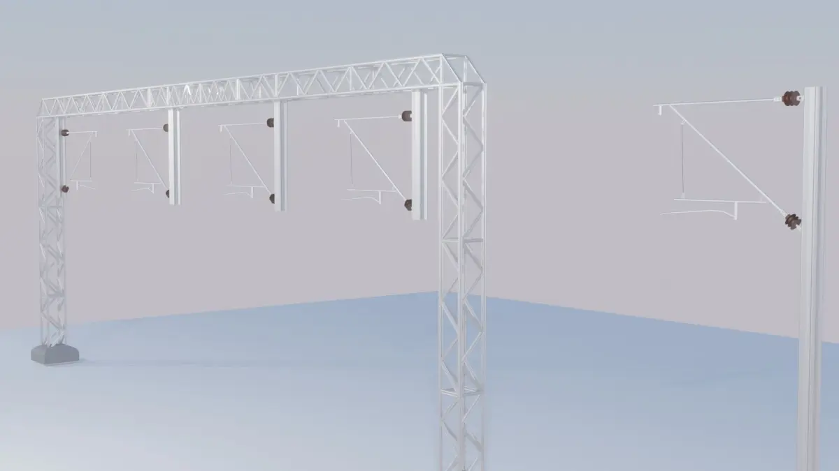 detailed model of cantilever,2 versions of train poles,