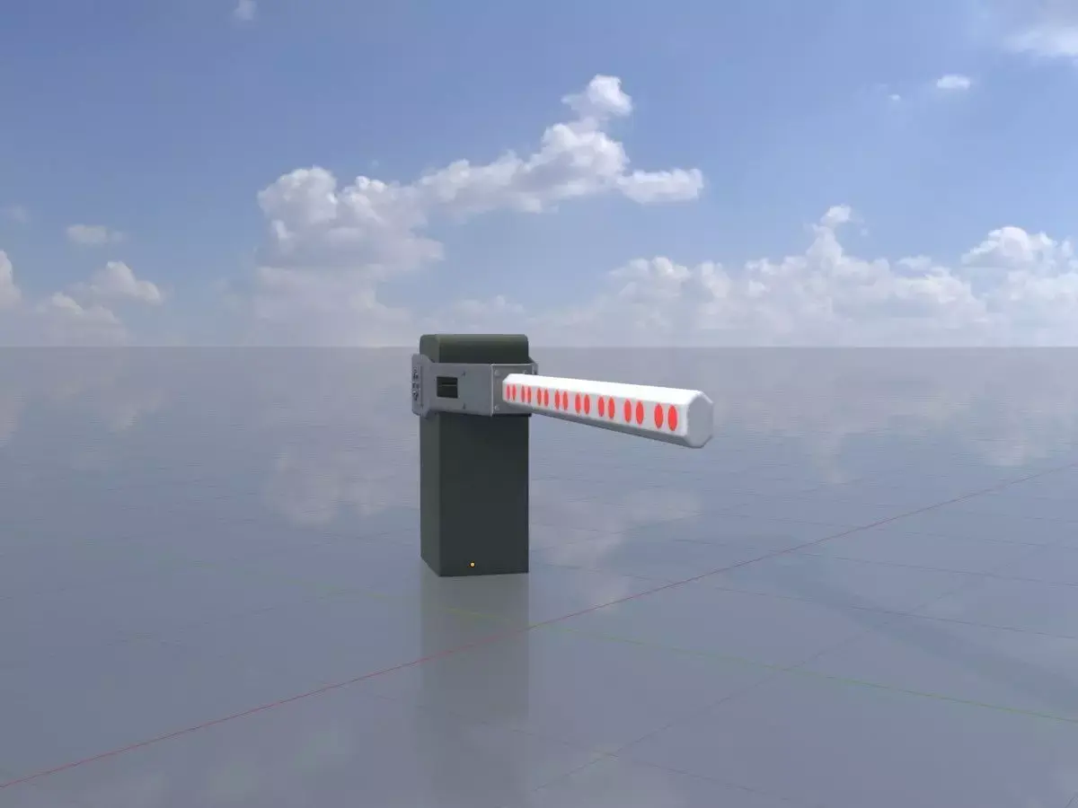 - Here you can see a 3D model of a closed railroad crossing gate.