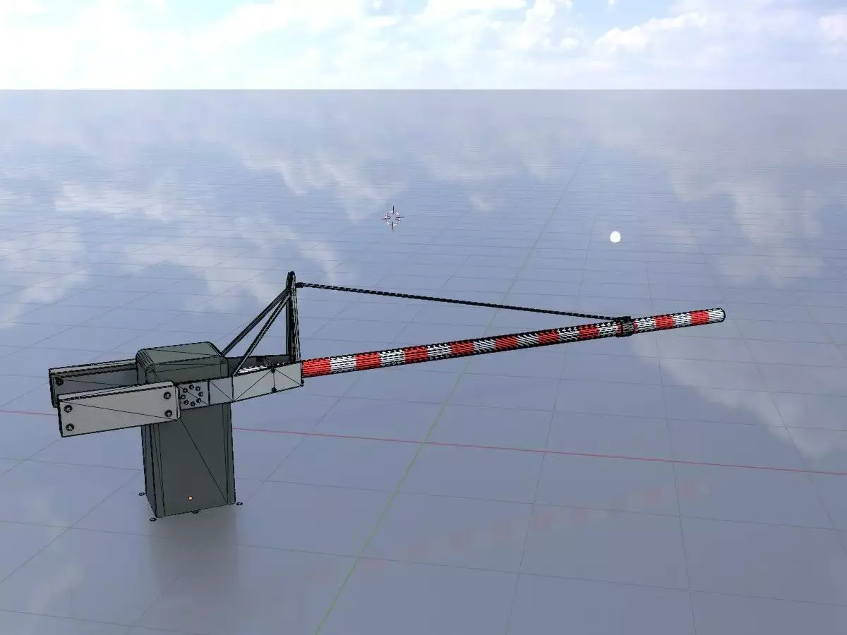- Here you can see a 3D model of a closed railroad crossing gate.