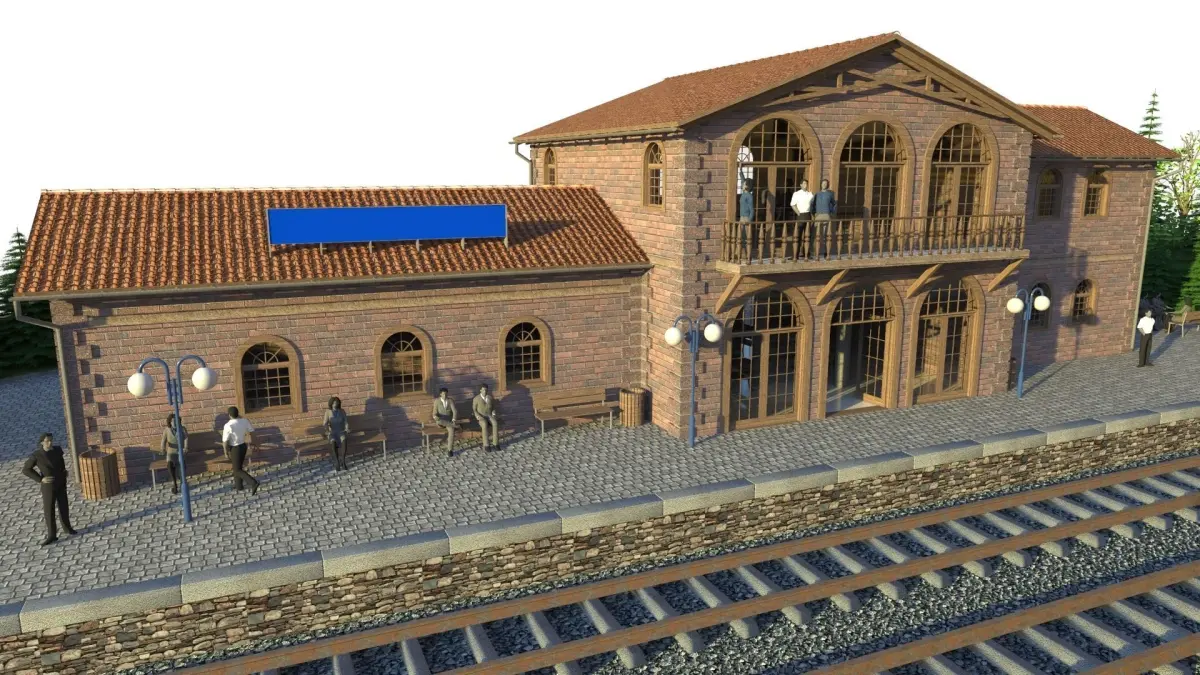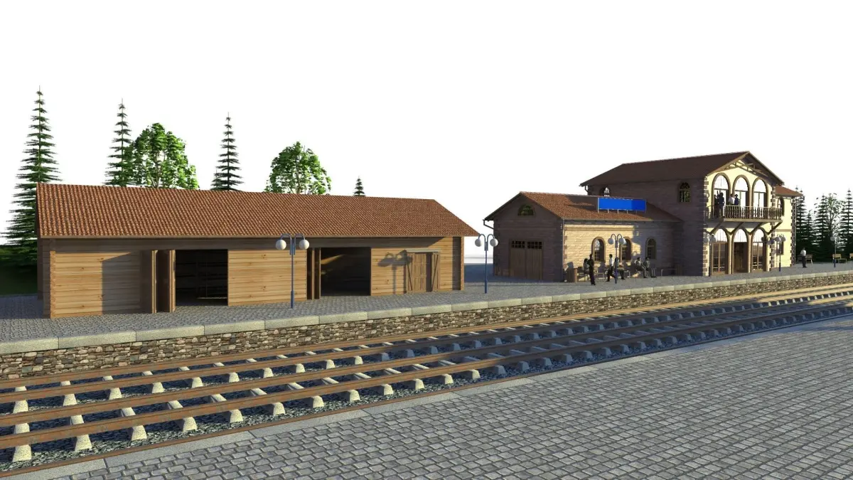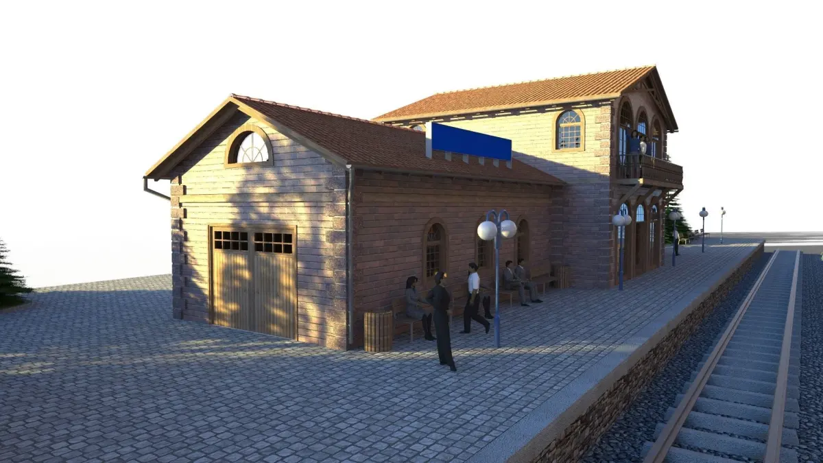 Old railway station, with tree rails and depot.Railway modelling: vailable like STL file in H0, TT and 00 scale.
