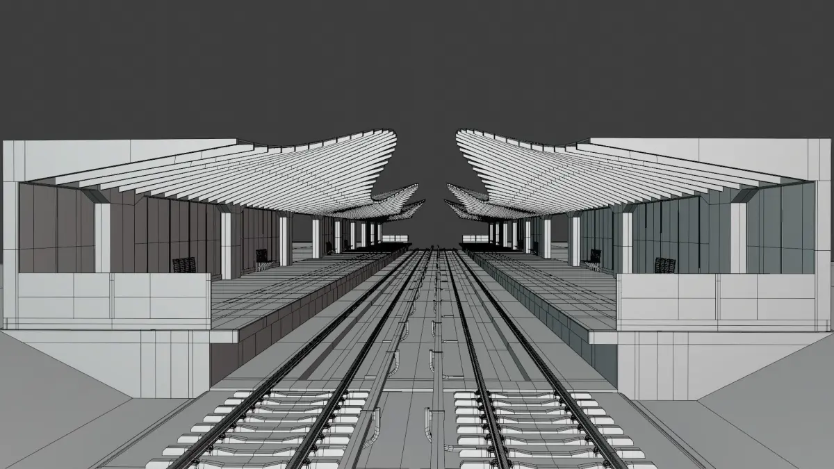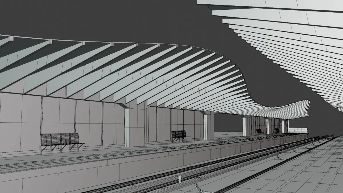 - This is 3D model of railway or overground metro station.