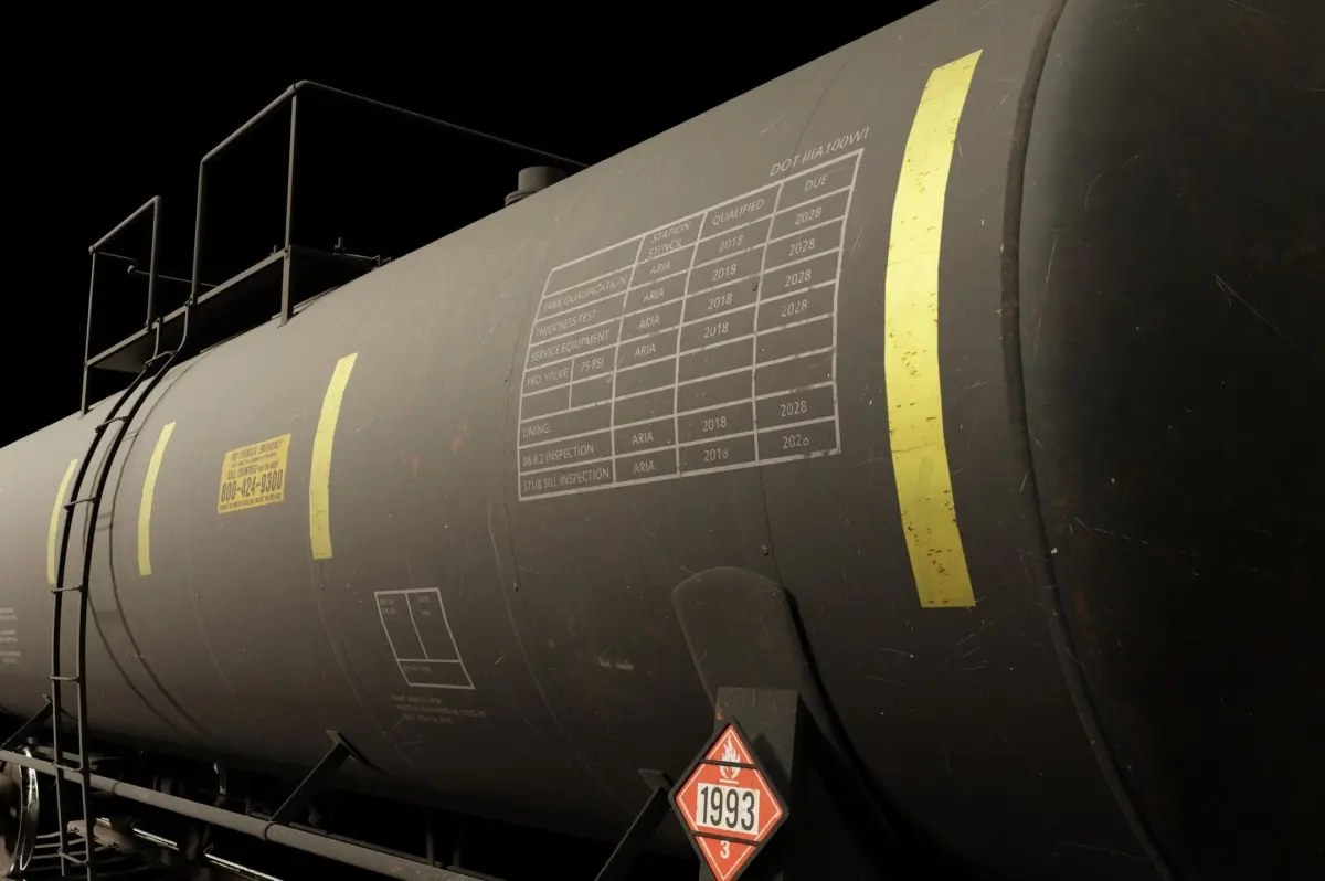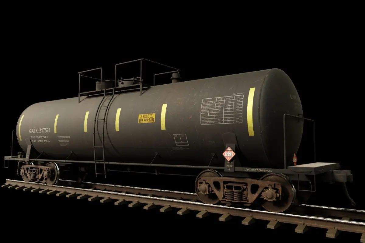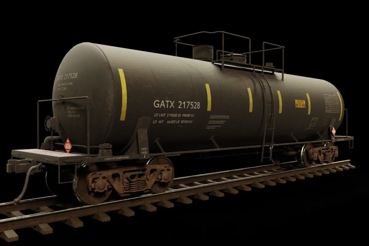 A detailed GATX railway tank 3d car model carrying a flammable liquid (UN 1993). Suitable for closeup renders and animations. Will fit into any industrial scene either as a standalone model or with other scenes.Model has real world dimensions: