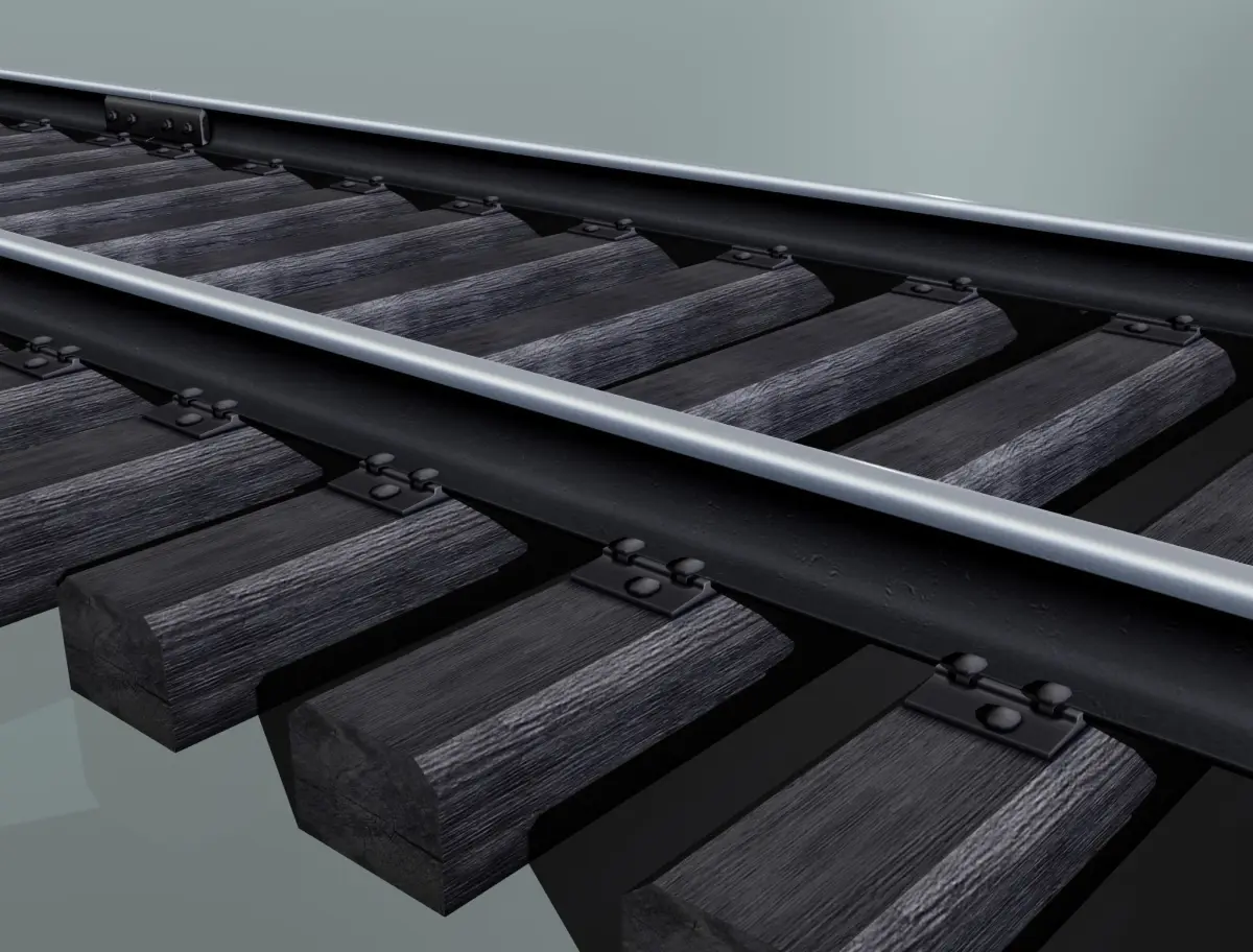 Rail track standard 1524мм with woody sleepers3D model of railway track for use in scenes of the widespread use.