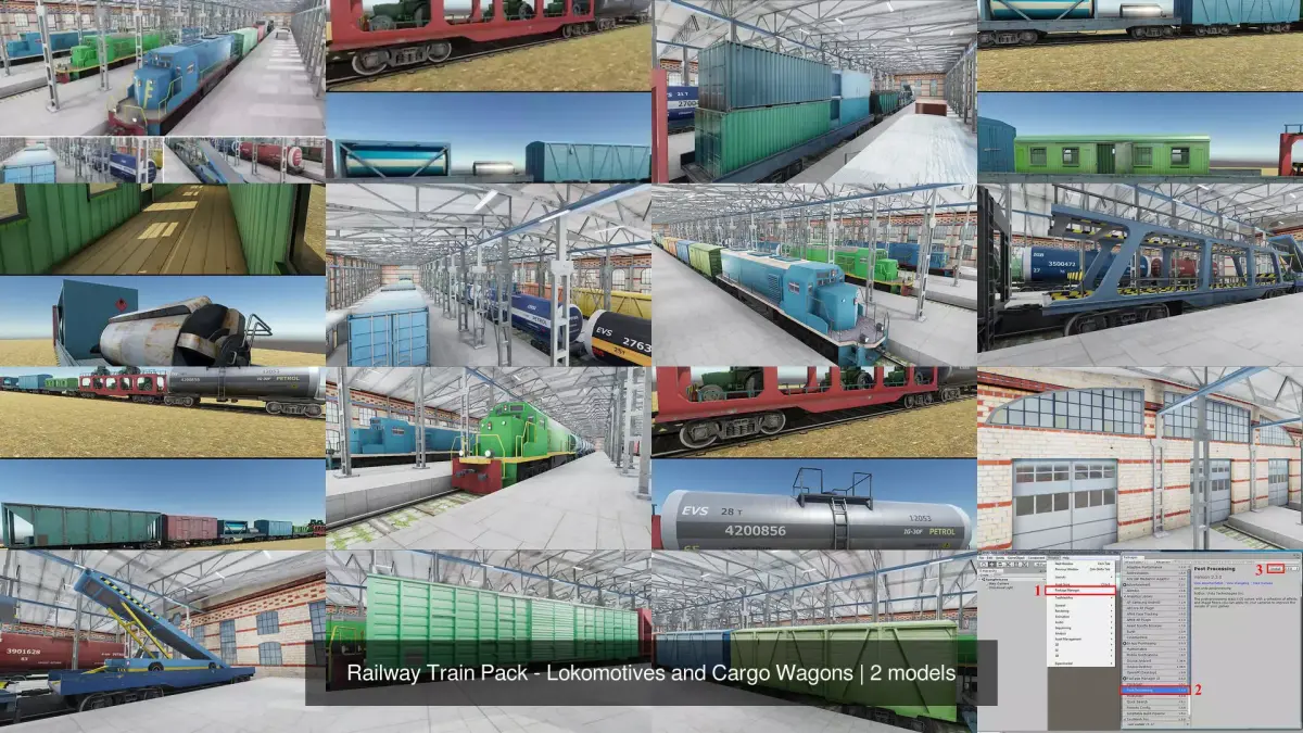 Large Railway Asset Packs Including Cargo Wagons and Lokomotives for mobile/PC/VR games.