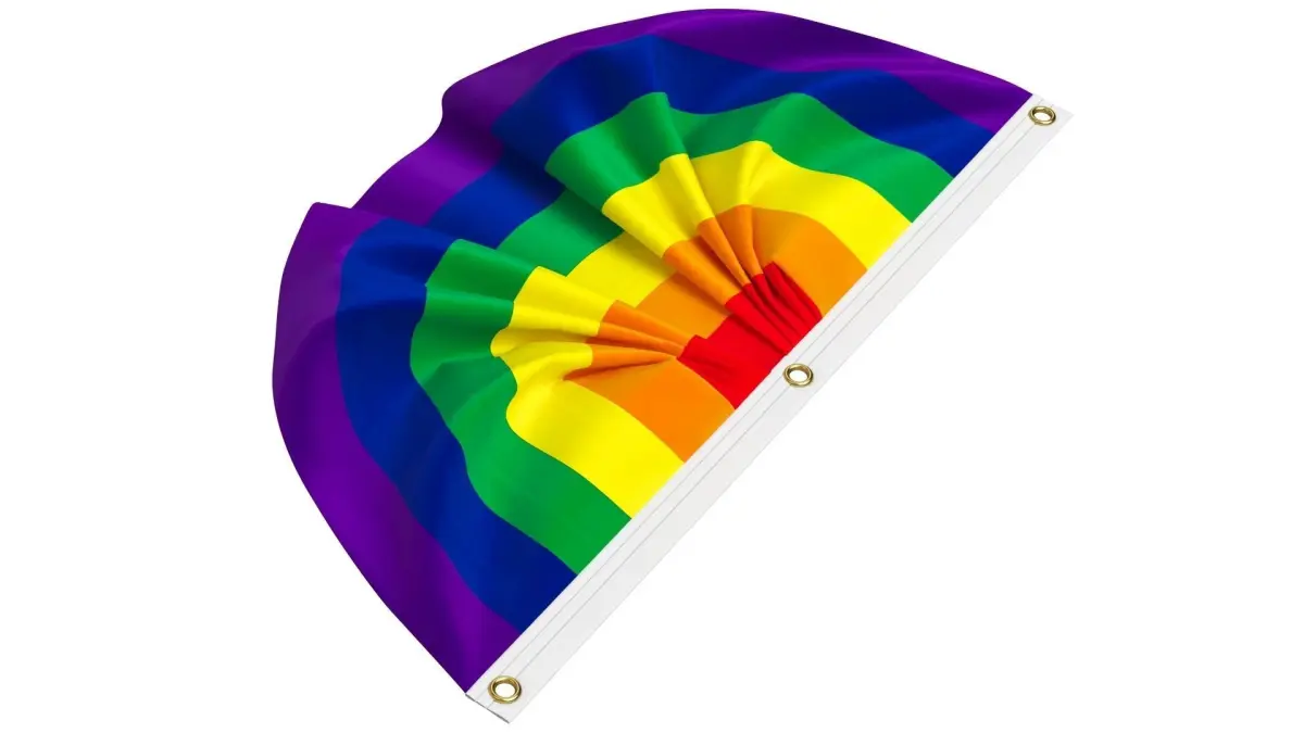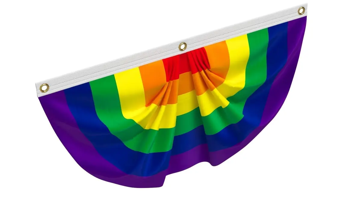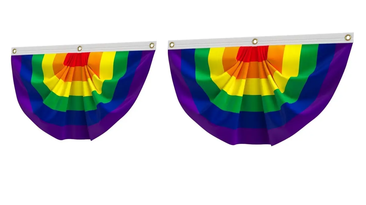 The rainbow pleated patriotic fan flag is an accessory that represents the LGBT community with its symbolic colors. The rainbow pleated semi-circle flag is a multicolored flag that represents the diverse community of lesbian, gay, bisexual, transgender (LGBT), queer pride, and LGBT social movements.