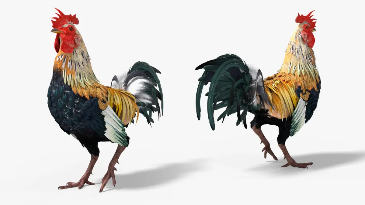 This animation set includes 3 rooster animations designed to capture natural bird behavior and expressive body language. The pack is suitable for use in cinematic scenes, games, and simulations.