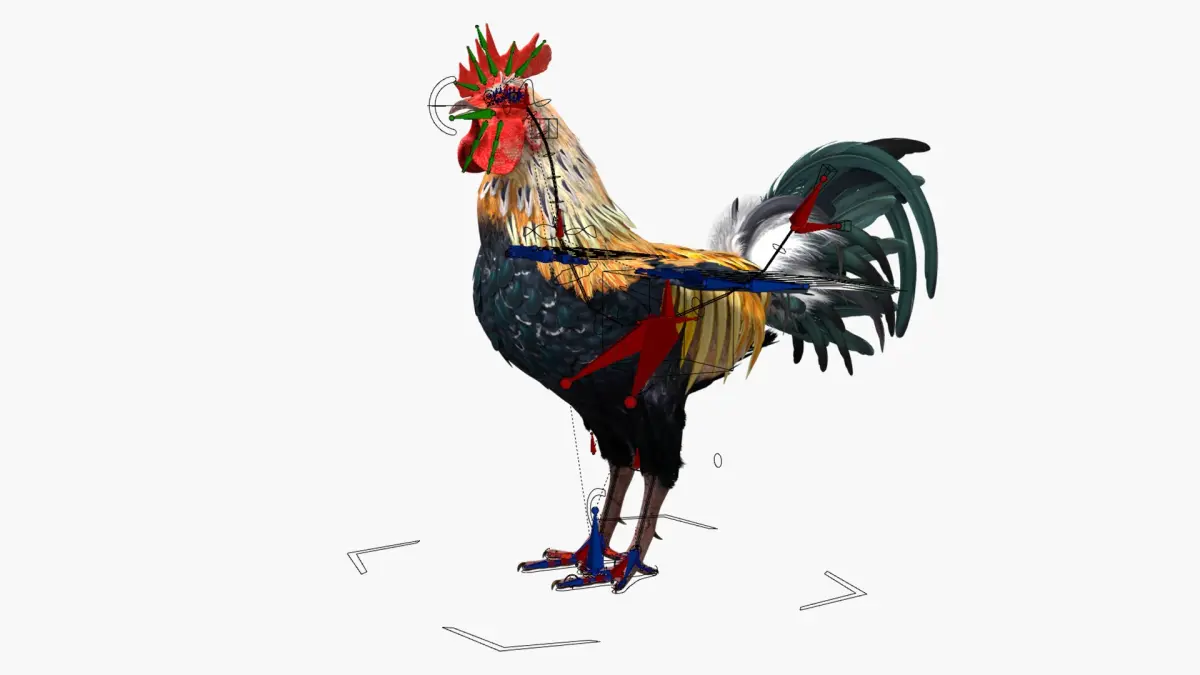Rainbow Rooster Rigged For Blender is fully rigged and is ready to be animated in Blender. You can easily position it the way you need or animate it the way your project requires. See the screenshots to get an idea of how rigging works. The pose of the model on the render images is an example and can be recreated using rig, it is not initially included into the product.