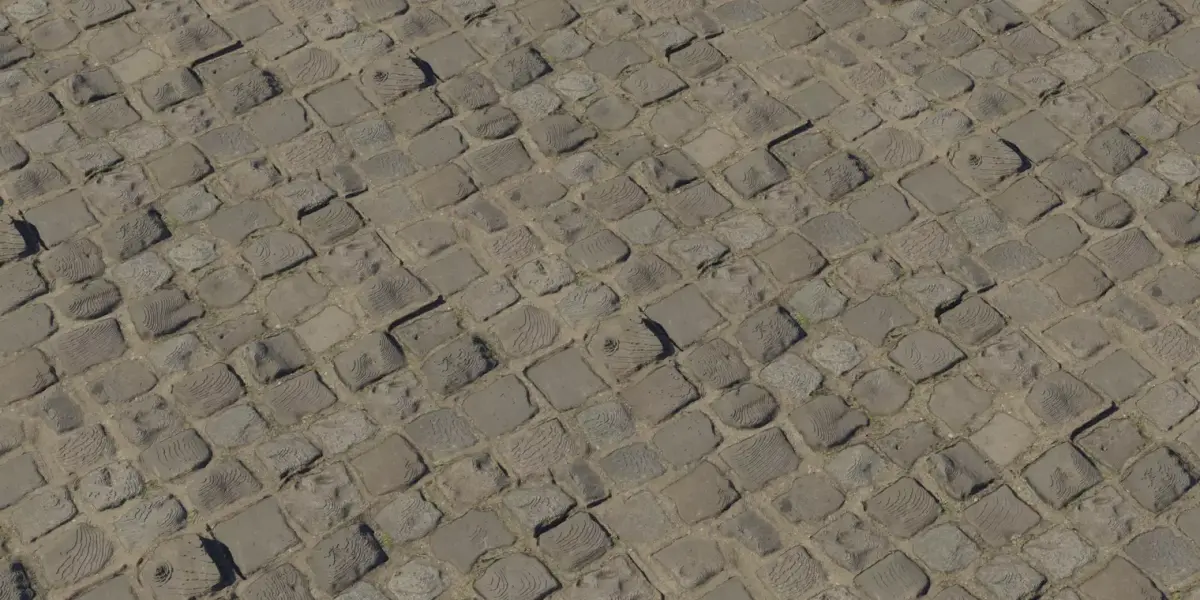 This Raised Cobblestone PBR material captures hand‑set stones that sit proud of the joints, showing soft bevels, shallow chips, and occasional swirl‑like wear patterns from years of traffic. The Normal map preserves crisp edge definition, the Roughness provides realistic semi‑matte stone highlights, and the Height map adds pronounced raking‑light separation—ideal for close‑up hero shots in Unreal, Unity, or Blender. The neutral gray‑brown palette grades easily warmer or cooler to match art direction, while clean, seam‑free tiling reads naturally from top‑down to ground‑level cameras. Plug into a Metal/Rough workflow—Albedo, Normal, Roughness, AO, Height—then tune displacement intensity to scene scale and performance targets. Perfect for medieval streets, fantasy towns, castle courtyards, and historical backlots needing fast, photoreal stone paving.