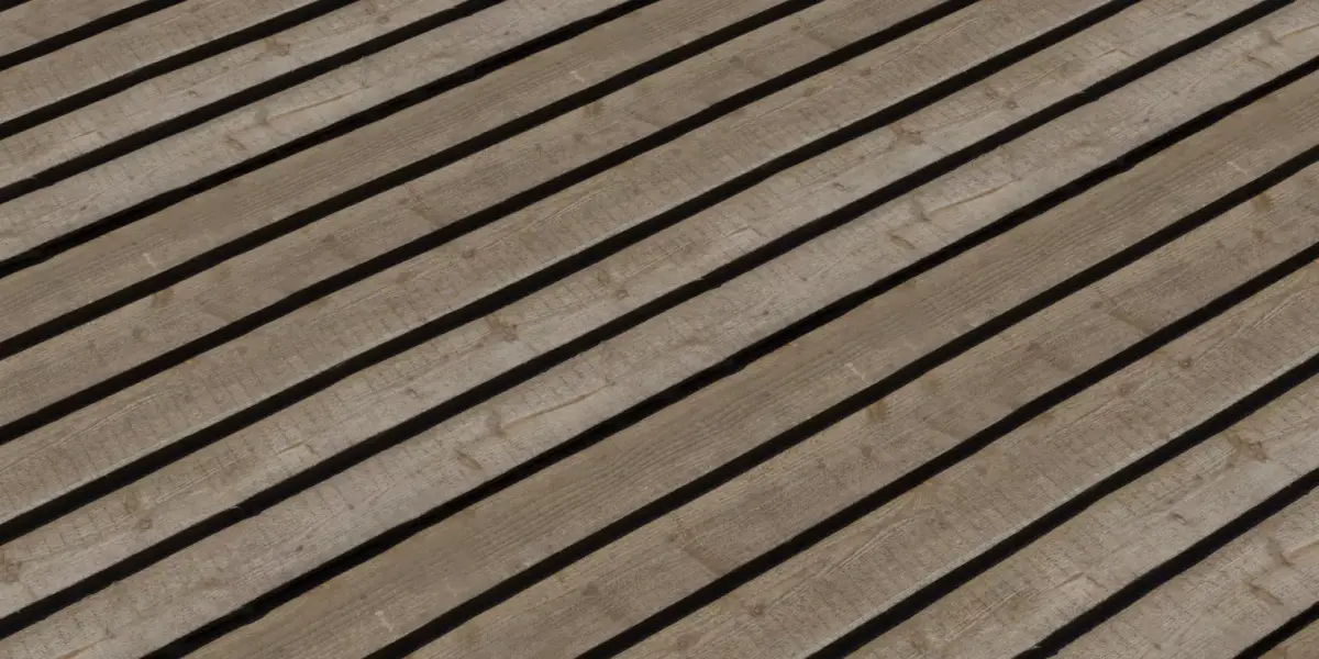 This 4K seamless PBR material captures raised slatted deck boards with prominent black expansion gaps for a bold, modern outdoor look that reads clearly at distance. The BaseColor provides neutral sun‑washed brown tones with fine saw‑mill striations and small knots, while the Normal map emphasizes the step‑up profile of each slat, crisp gap edges, and subtle cupping for convincing grazing highlights. Roughness is authored as dry, matte wood with slightly smoother run‑in along board centers, preventing plastic sheen in real‑time engines and offline renderers. AO reinforces gap depth and slat separation without crushing shadows under HDRI or directional lighting. The asset tiles cleanly for docks, terraces, boardwalks, pool surrounds, and architectural set dressing where strong rhythm and negative space are desired. Recommended real‑world scale sets each board around 9–10 cm wide with 1–2 cm gaps; adjust UVs to taste. Works out‑of‑the‑box in Blender, Unreal, Unity, 3ds Max, Maya, C4D, V‑Ray, Arnold, Redshift, Octane, and Houdini. Delivered as BaseColor, Normal (OpenGL), Roughness, and AO at 4096×4096; packed ORM/RMA maps available on request. Licensed for commercial games, film, and visualization; redistribution of raw files is not permitted.