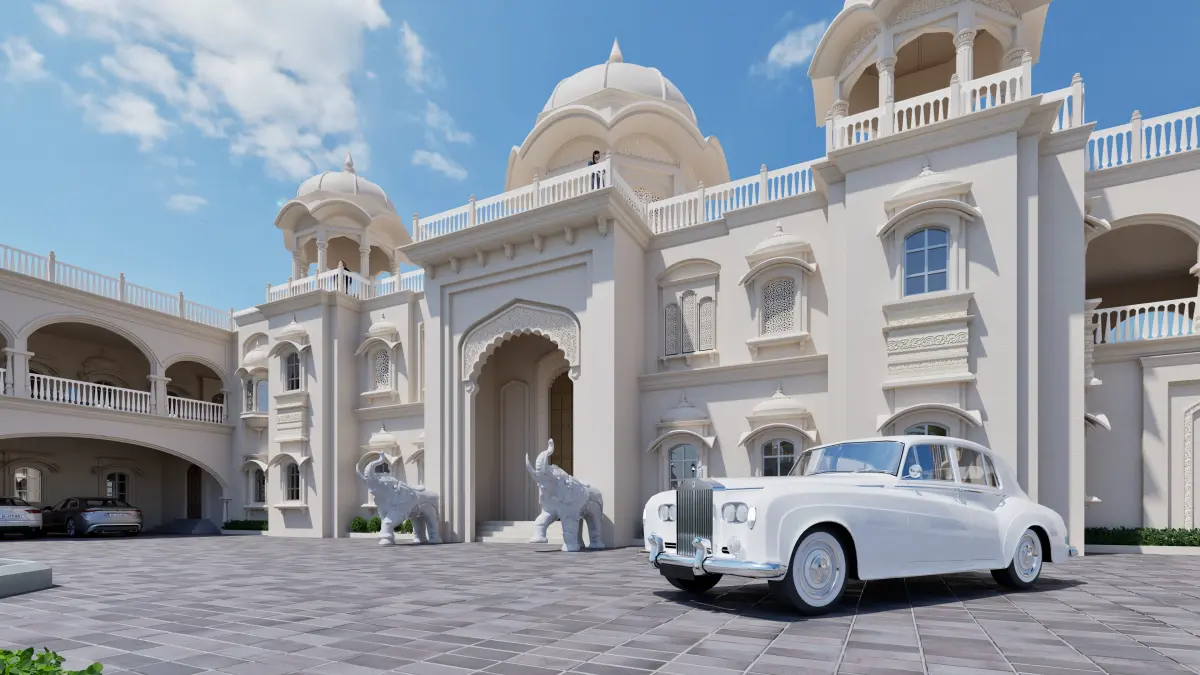 Transport yourself to the heart of Rajasthan with this stunning 3D model of a grand heritage house. This digitally recreated masterpiece showcases the architectural brilliance of traditional Rajasthani design, featuring a magnificent main gate that is a testament to the region's rich artistic heritage.Bring a touch of Rajasthan's timeless beauty to your projects with this high-quality 3D model. Download today and unlock the potential of this stunning architectural masterpiece.