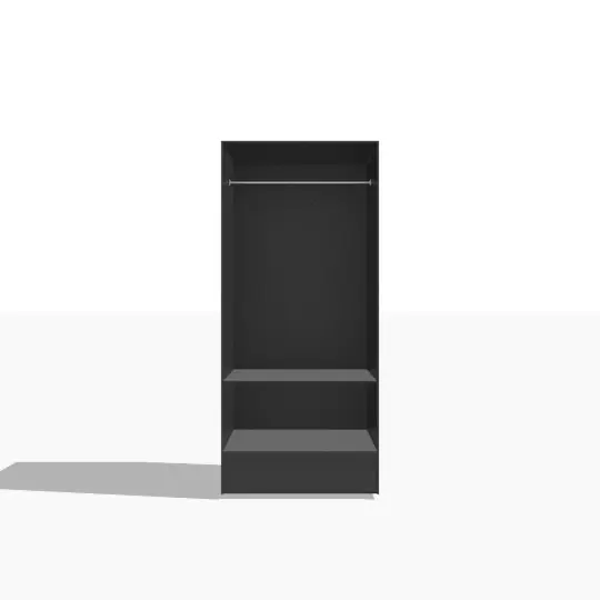 Meet our elegant black wardrobe made from high-quality board pieces, designed to combine style and functionality. With two sleek doors, this wardrobe offers ideal storage for all your needs. The shelf at the bottom provides ample space for folded clothes, while the top offers the perfect place to hang clothes, keeping everything organized and easily accessible. A modern look with a classic touch, this wardrobe is perfect to complement any type of interior. Add a touch of luxury and comfort to your home with this versatile wardrobe. Don't miss your chance to own one!