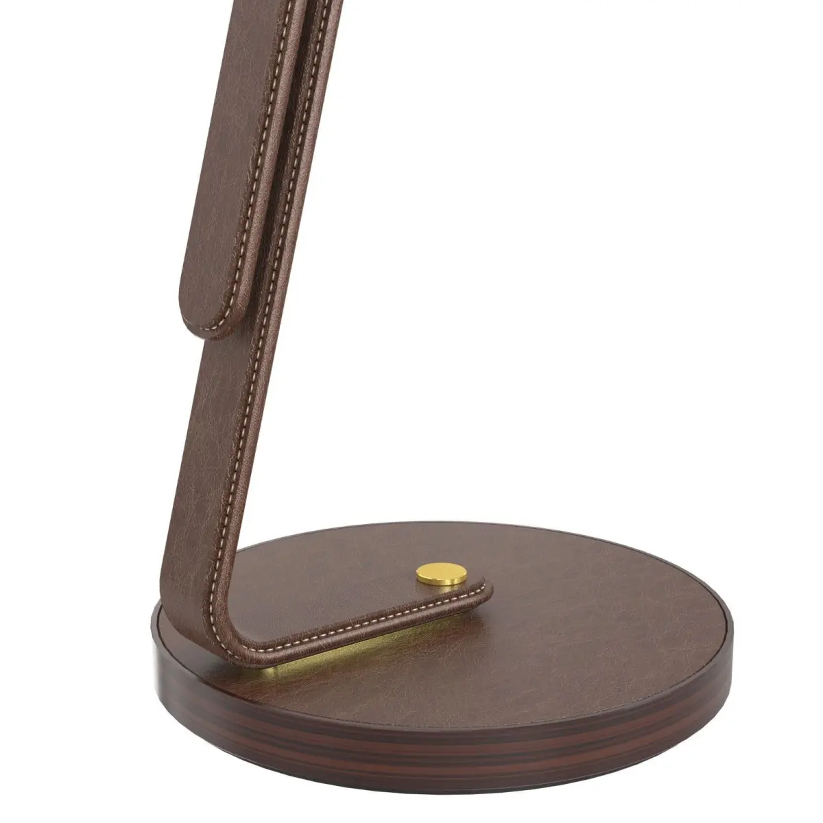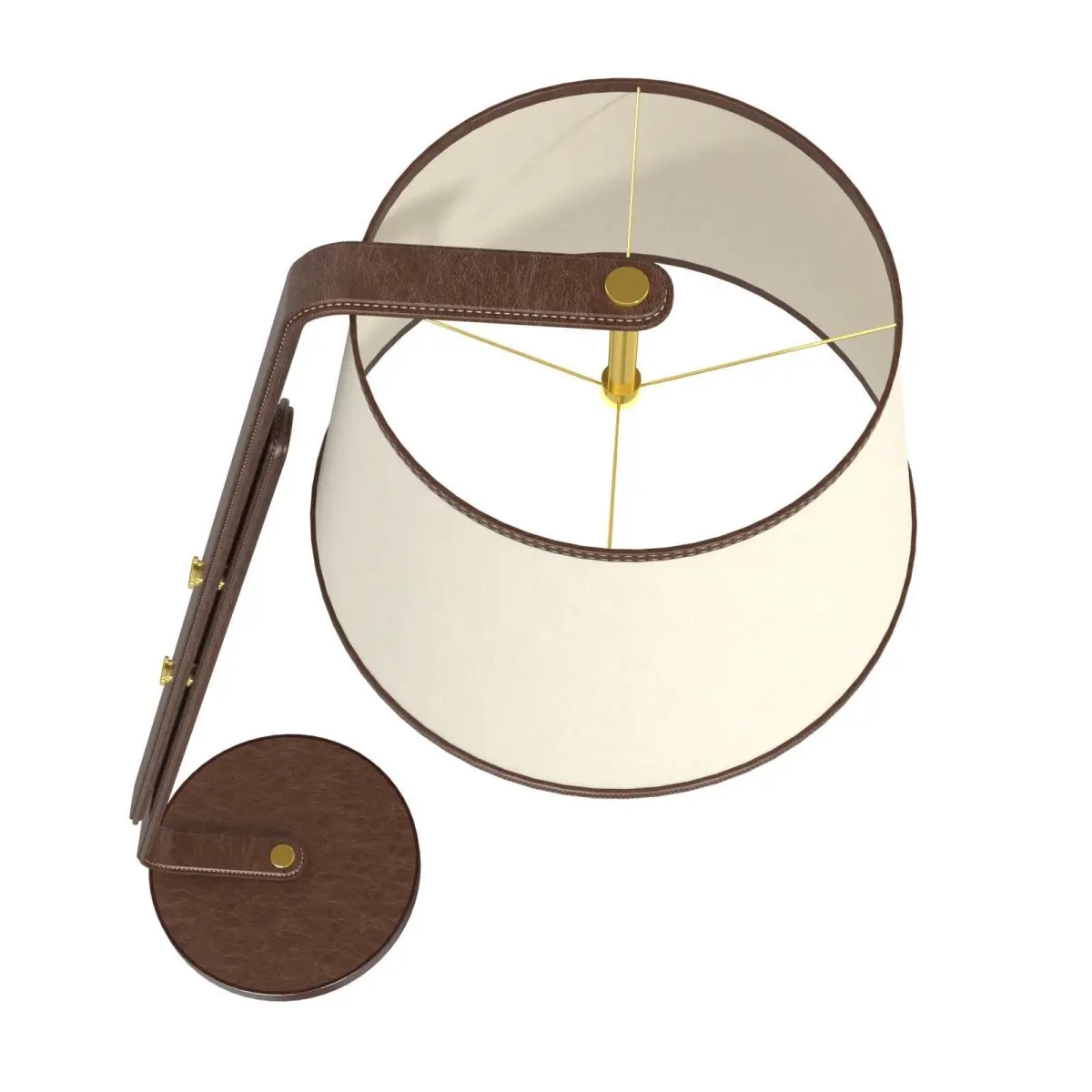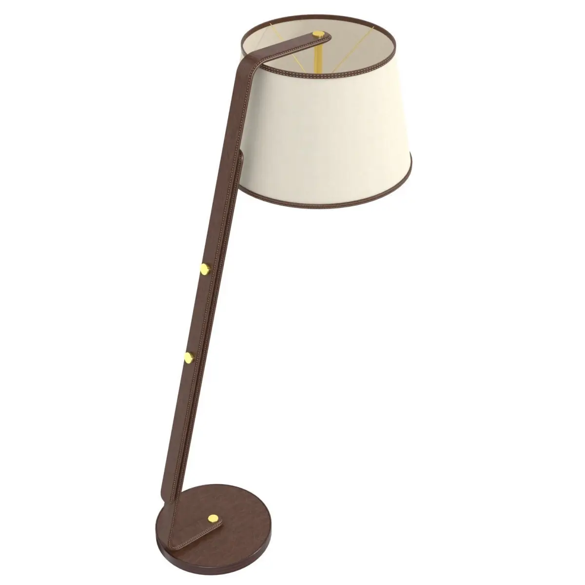 Visual Comfort RL1477SDL-L Ralph Lauren Devin Floor Lamp. High end, rare lamp, made from a beautiful saddle leather, heavy base and fine detailed stitchingThis lamp was a floor model and has a few scuffs and a slightly bent bulb holder. Beige lampshade, brown leather, angled frame, adjustable heightsizeHeight: 64Width: 19Extension : 30"