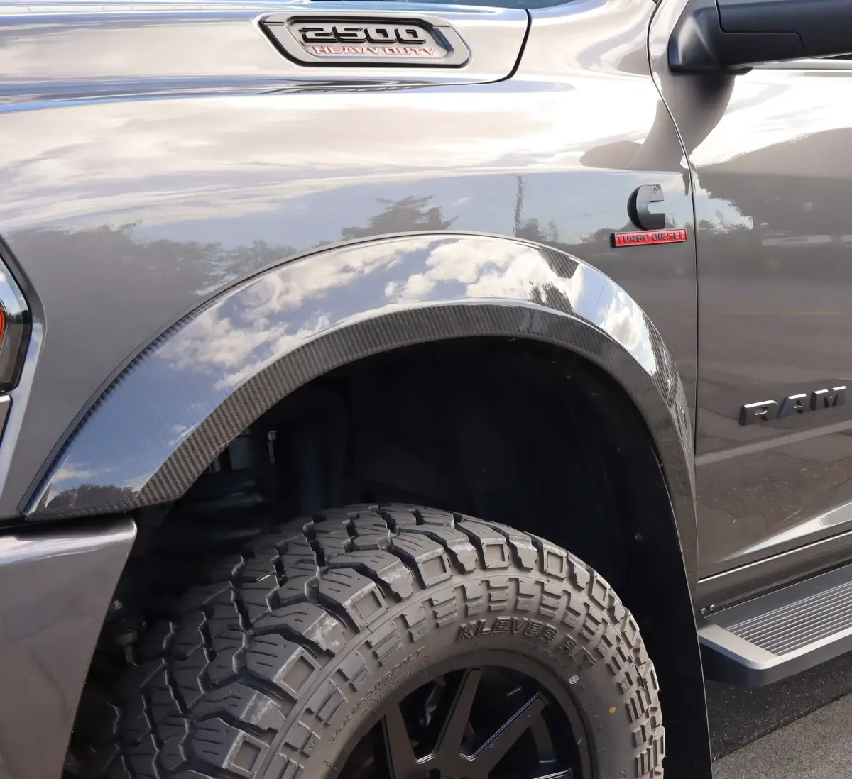 These are the fenders for a RAM vehicle. They are modeled at the actual dimensions and include the bolt holes. The 3D model is accurate, so it can be used directly to produce molds for carbon fiber fenders. You can also use the existing hole positions as a reference to customize your own fender design.