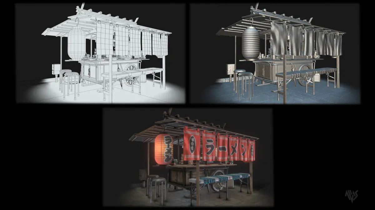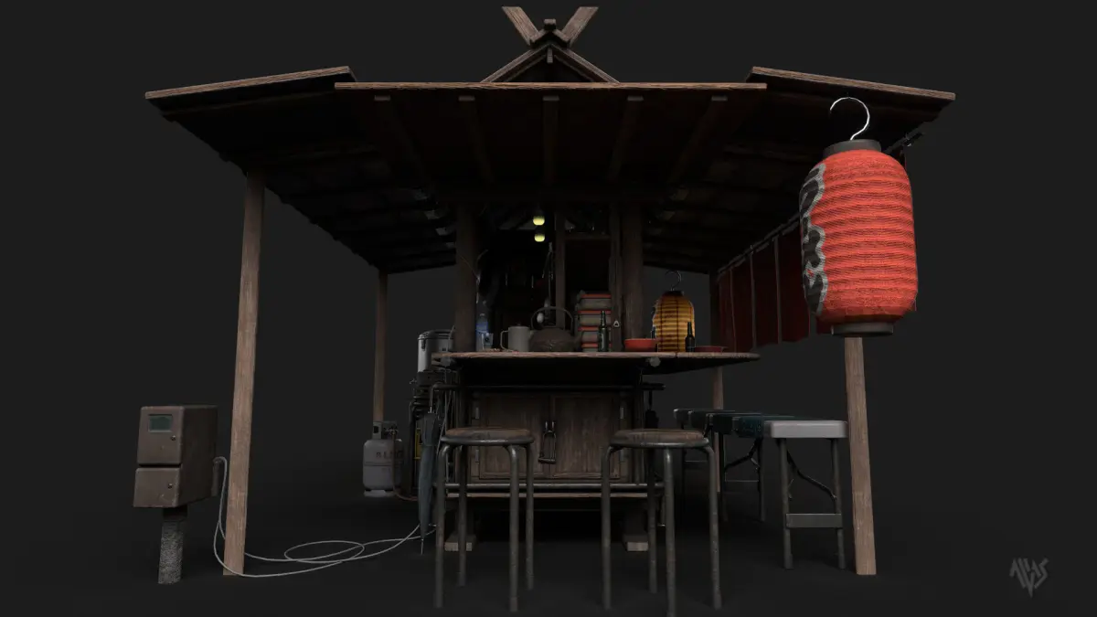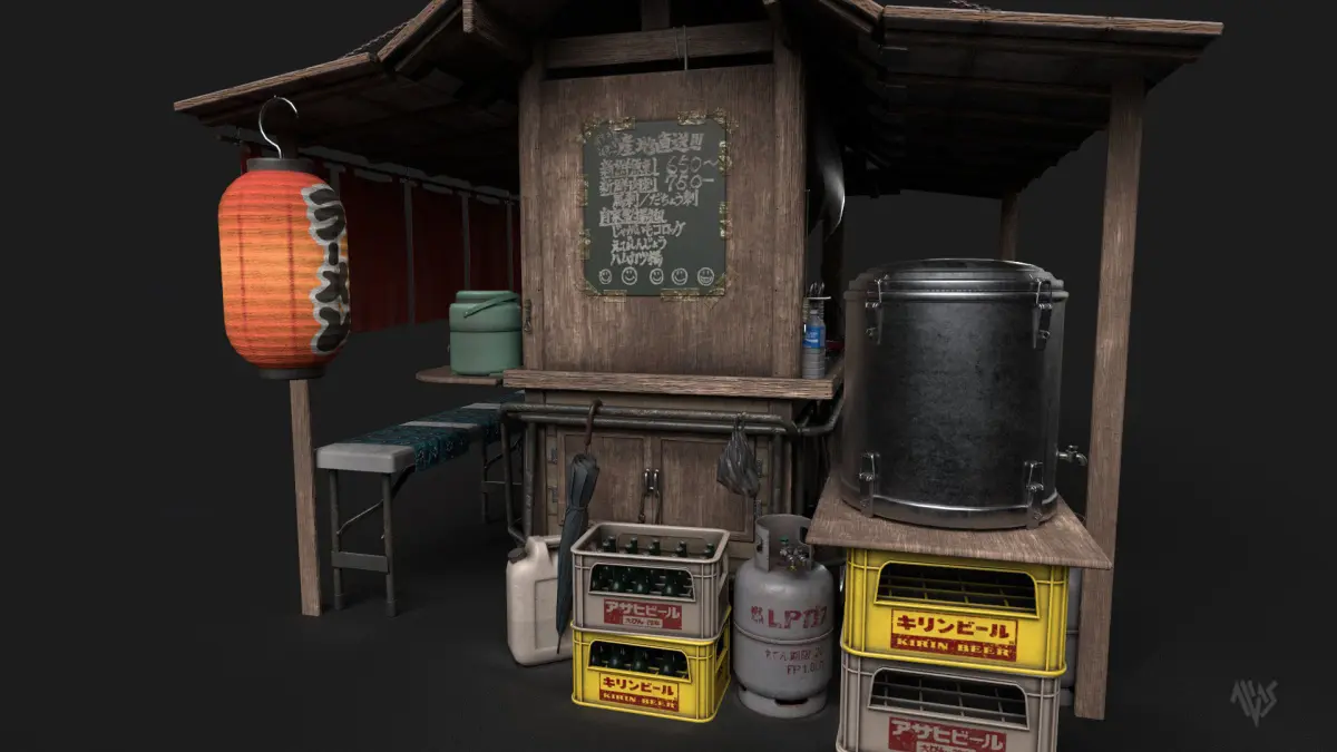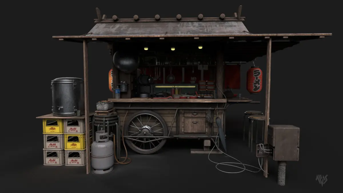 Typical Ramen Yakitori Yatai commonly scattered across Fukuoka region.Modelled in maya, sculpted in zbrush, textured in substance painter.Obj and Fbx format with 1k, 2k and 4k textures in the additional file.Also includes a set of textures with fake brand names to avoid any licensing issues also in 1k, 2k and 4k.https://www.artstation.com/artwork/g0vNBZ