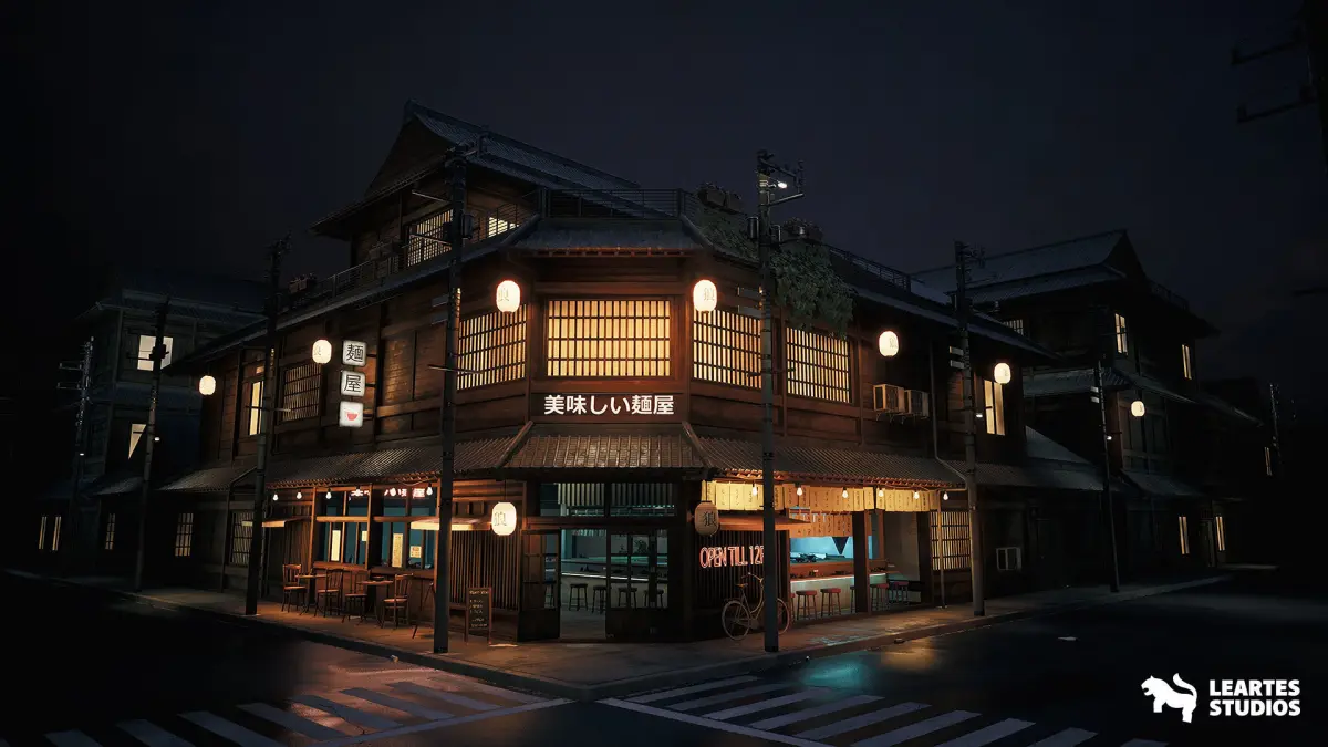 Imagine a Ramen Restaurant in your game. Experience the Asian ambiance and savor high-quality Asian cuisine in an engaging restaurant. The project features industrial kitchen props, modular building meshes for counters, and optimized materials and meshes.