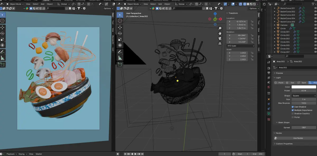This dynamic and visually stunning floating ramen bowl 3D model is perfect for food-related animations, product renderings, and artistic projects. Featuring a beautifully detailed composition of noodles, toppings, and chopsticks in mid-air, this asset adds energy and realism to any scene.