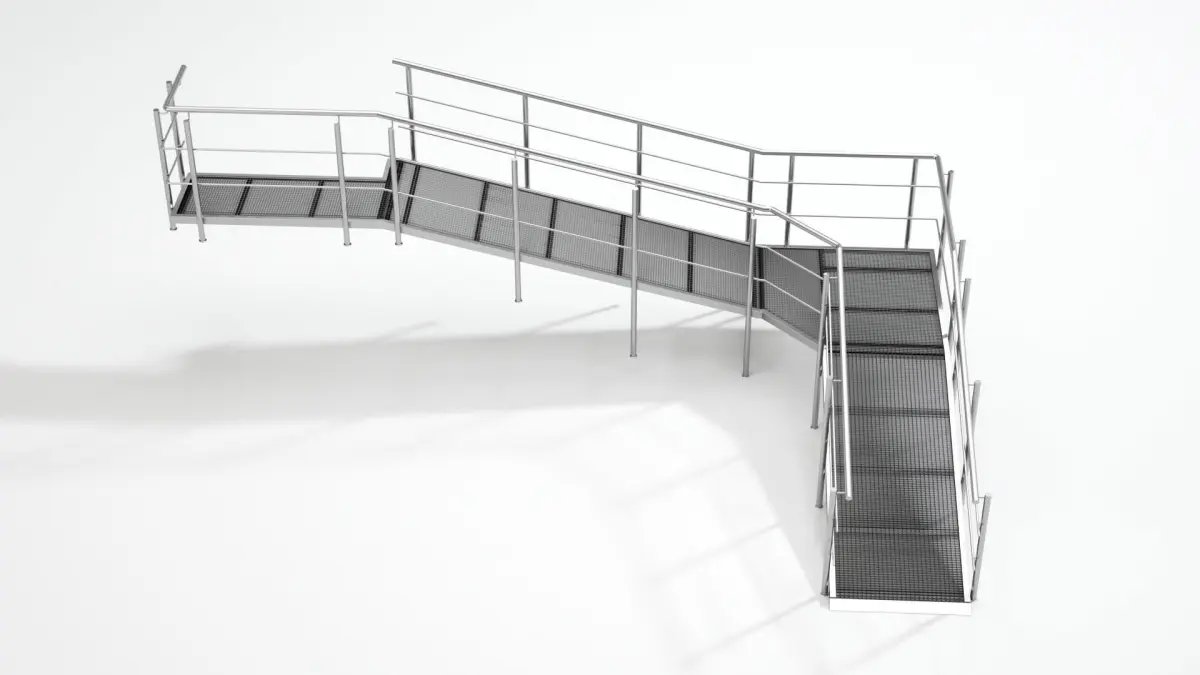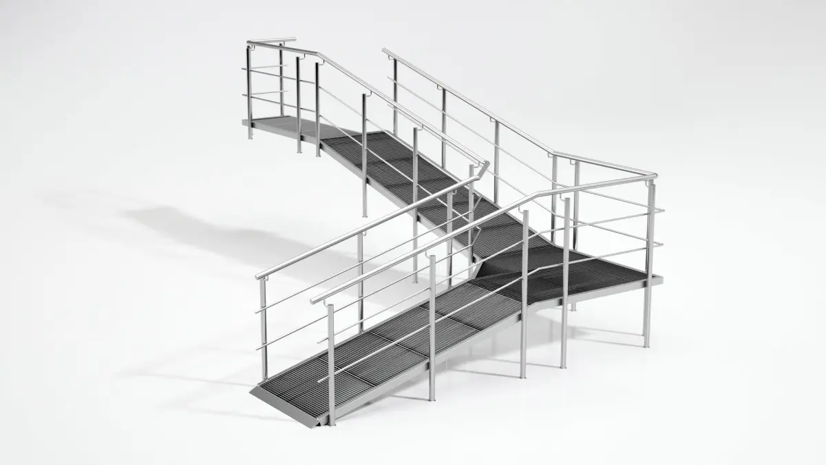 3D model of a ramp for people with disabilities. Scheme included in millimeters.