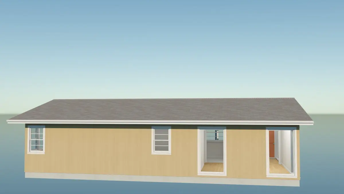 This is a classic example of a single storey American Ranch Style house typically ordered from a catalog in the 1950s. They were inexpensive, 2-3 bedroom, 1 bath, single family dwellings. Often called tract homes, it was not unusual for there to be many in a single new subdivision. Young families could choose their new home from a catalog of 20 - 30 floor plans. Developers could use common materials across all of the plans. There are still many, many thousands of these homes in suburbs all across America - though most have been modified over the years since they were quite small to begin with. The concept was not unique to America - many developing cities around the world, where space was available, adopted similar planning with styling changes to suit local tastes.