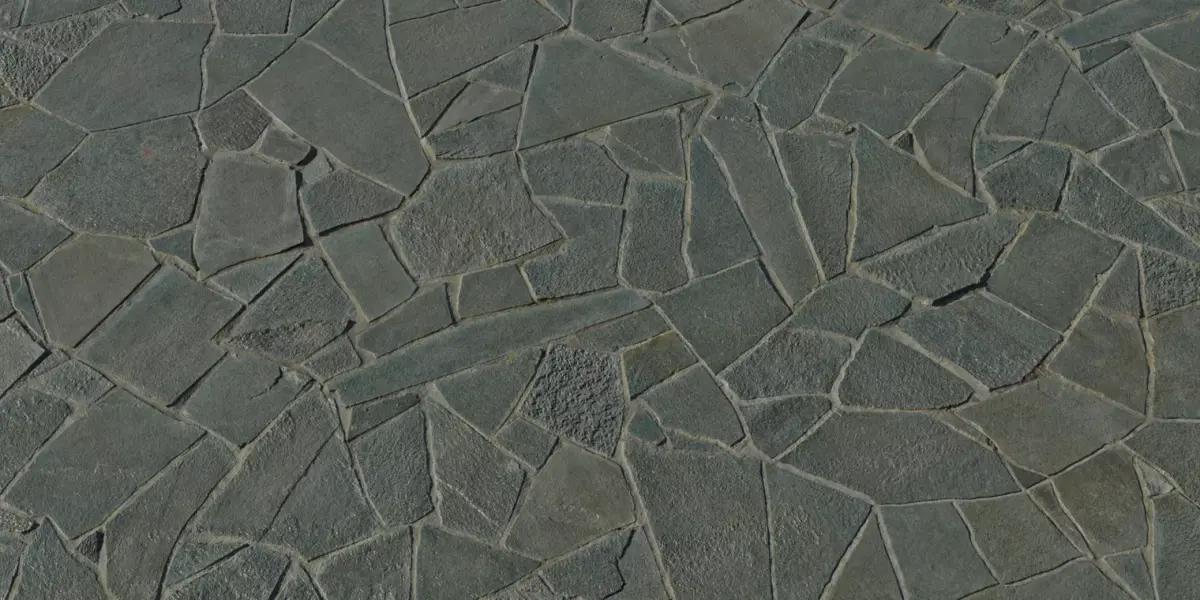 Natural flagstone variation, hand‑laid edgework, and credible grout depth for photoreal close‑ups.