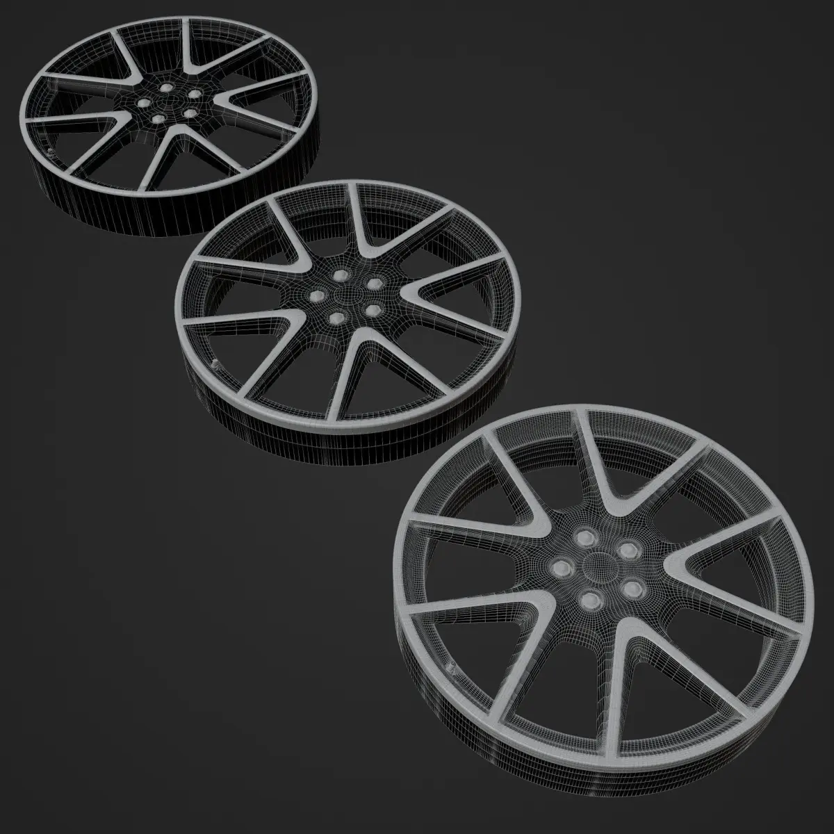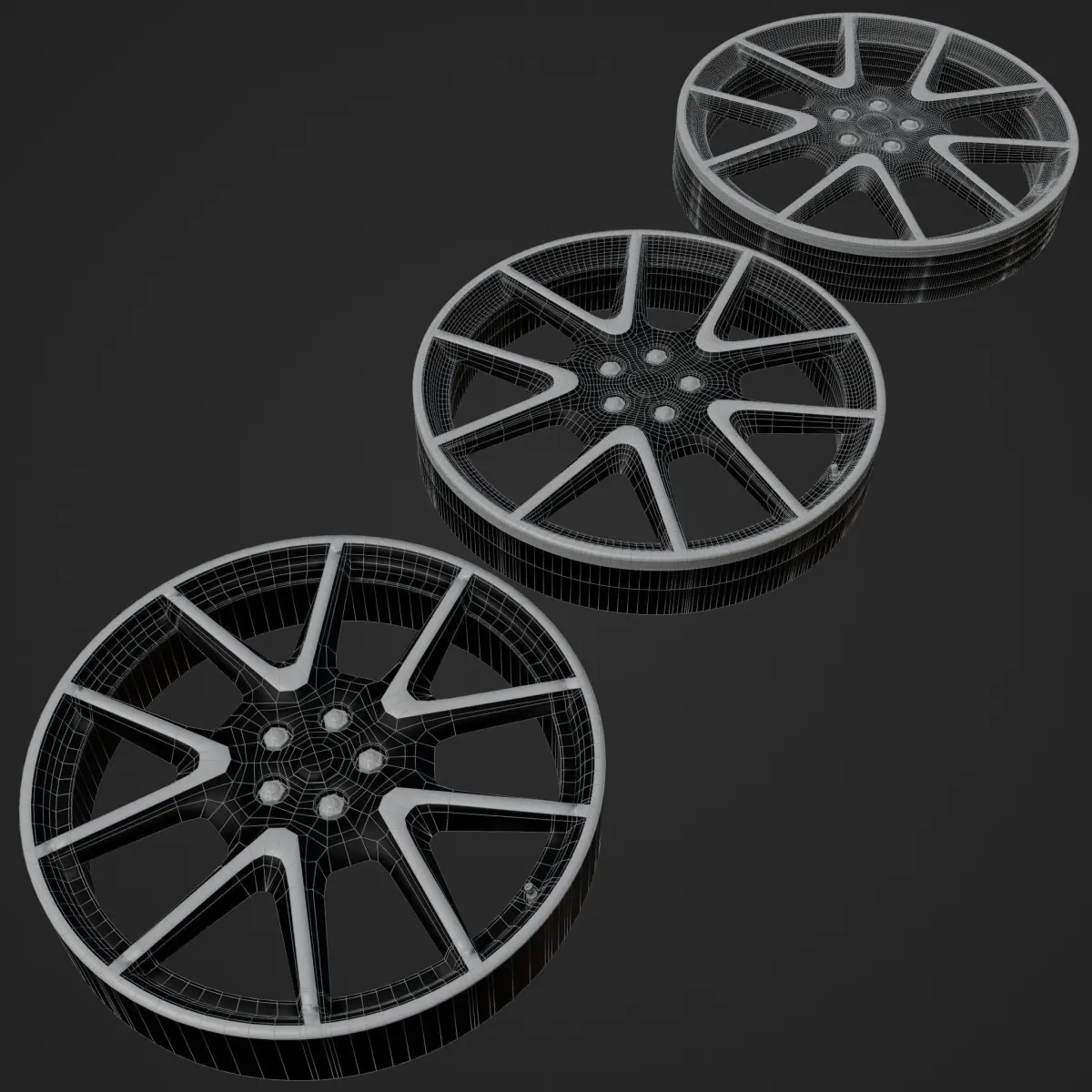 3 LODs of the wheel, very well modeled, game ready!