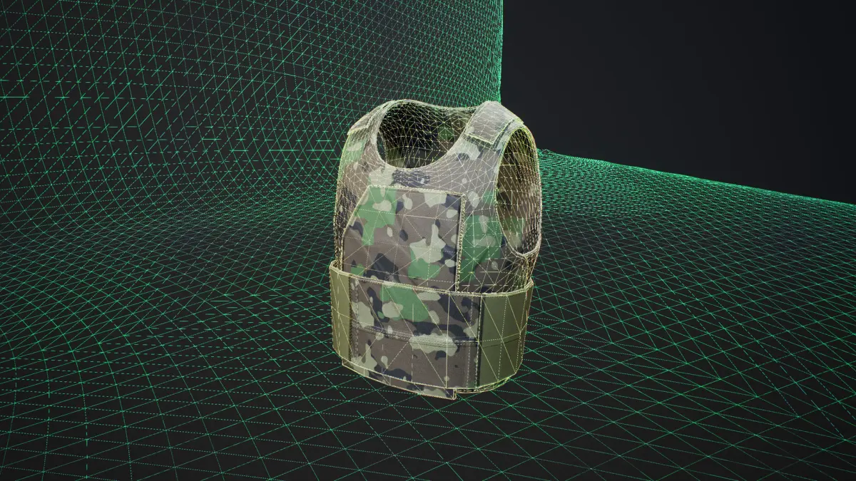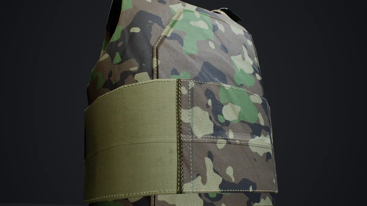 -Flat green texture as well as Tileable camo material if using UE4. Apply any seamless camo texture tot he Vest material.