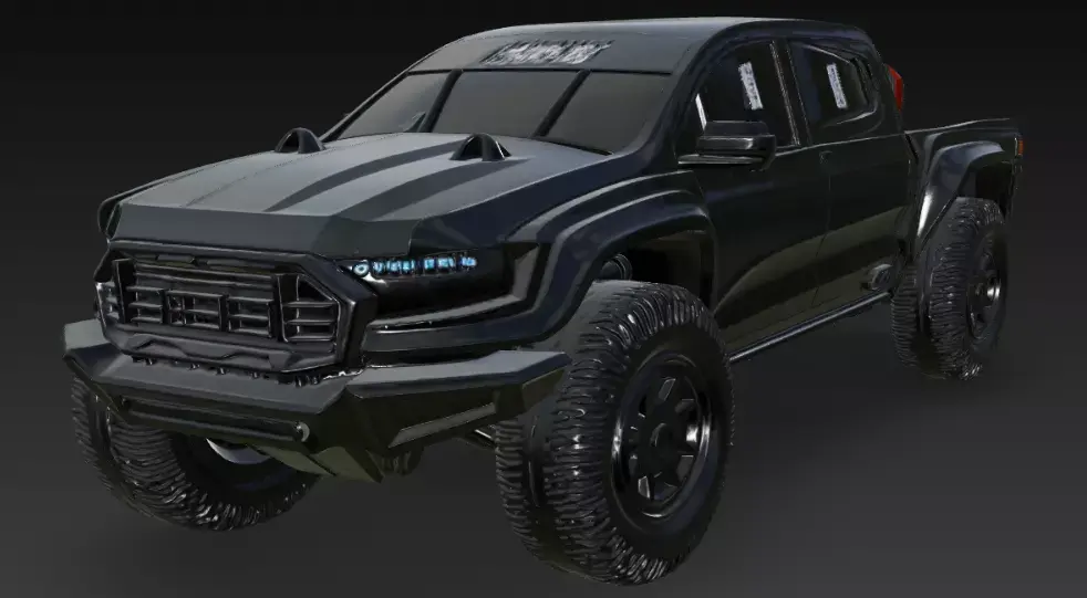 This model is based on 2018 Ford Ranger Raptor. I made the heavy modification to almost all parts in exterior and interior, equip with important performance parts for Baja racing, such as, suspension, extreme tire, extra tire on the bed, etc(as shown in the preview).