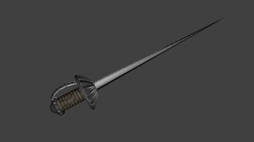 Model of a medieval rapier. The handle is made of metal , the handle is wrapped with a rope Used 4 materials and 4 textures Present UV Mapping On stage 3 lamps 1 object and 1 camera