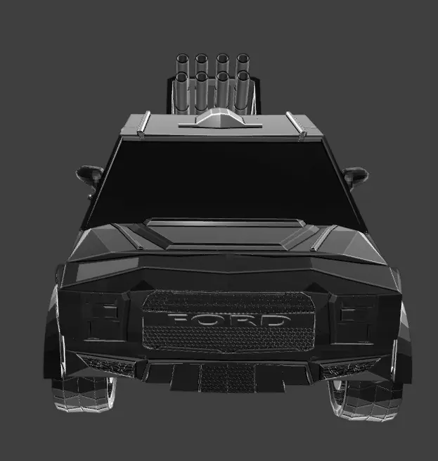 3D model of a raptor f150 pick up truck no insides partialy made cassis defoult UV mapping incluedes a 3d model of an altilery canon made for elimination of aircraftMade for using in game engineslow polygon count (ready for game but not fully low poly)Dowesn't include windshield whipers for some reason