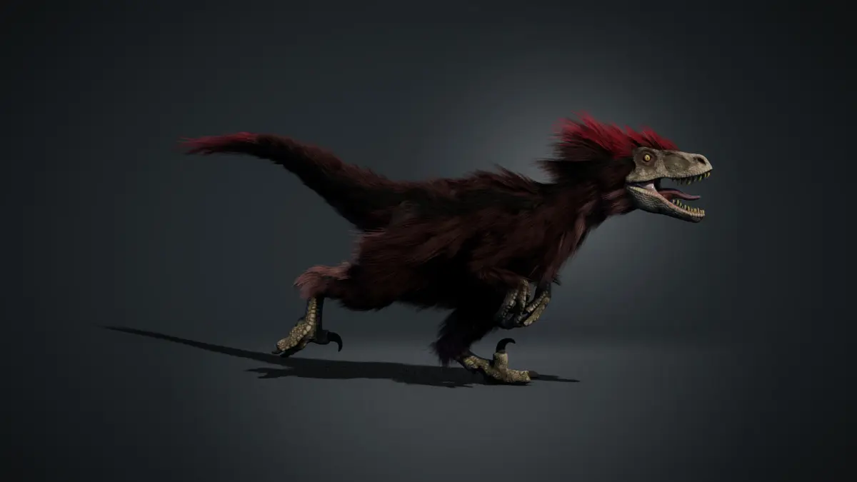 Raptor with feathers created in maya, rigged with Advanced Skelethon