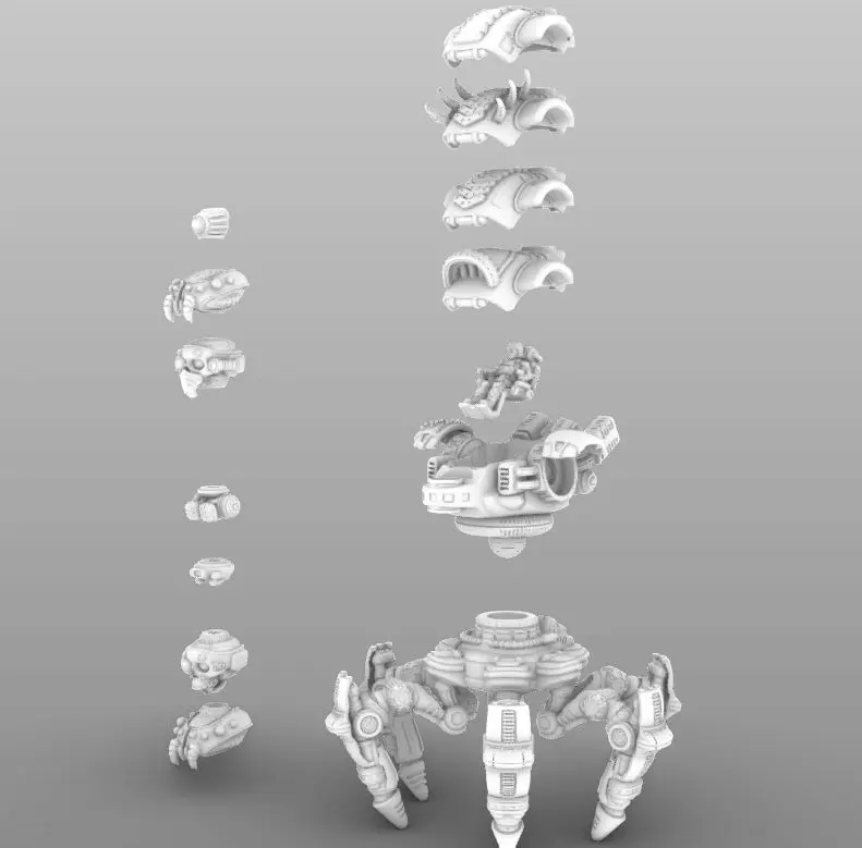 -Hull and Legs for Raptor K Variant are included.-Sensor heads, lights, and optics-Several different carapace toppers for the main hull, including standard, reinforced, and spiked.-All available weapons for distance and close combat weapons I offer, as well.-100mm Base-Standing and Based Waldo reference figure-Seated Waldo in Cockpit
