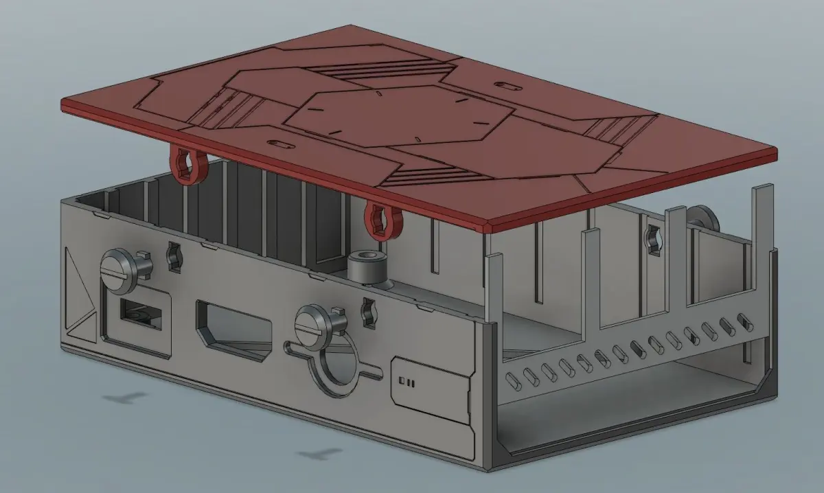 A Sci Fi style casing for Raspberry Pi Model 3 B, with screw locking system and front sliding piece