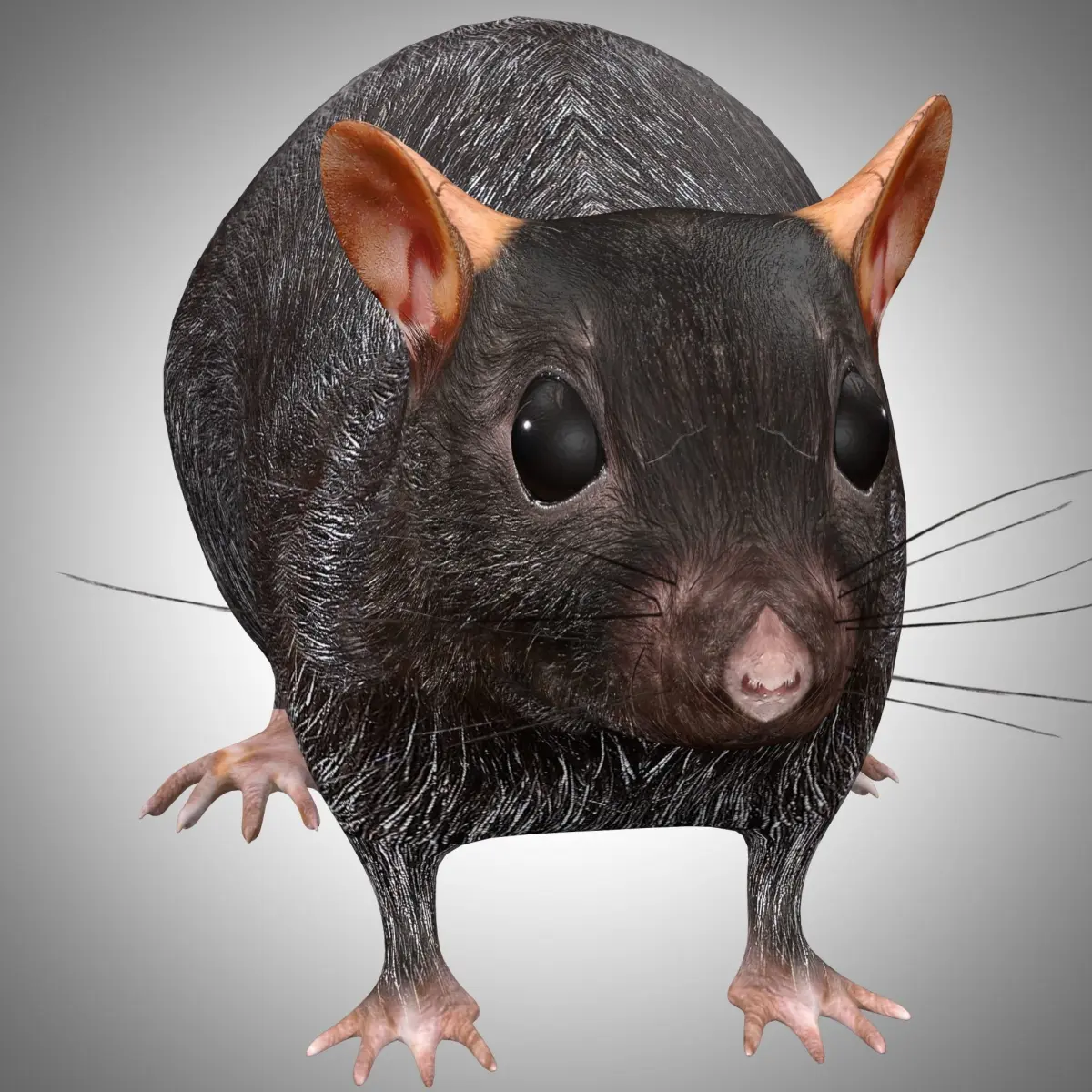Black Grey Rat fully rigged and textures, low poly model