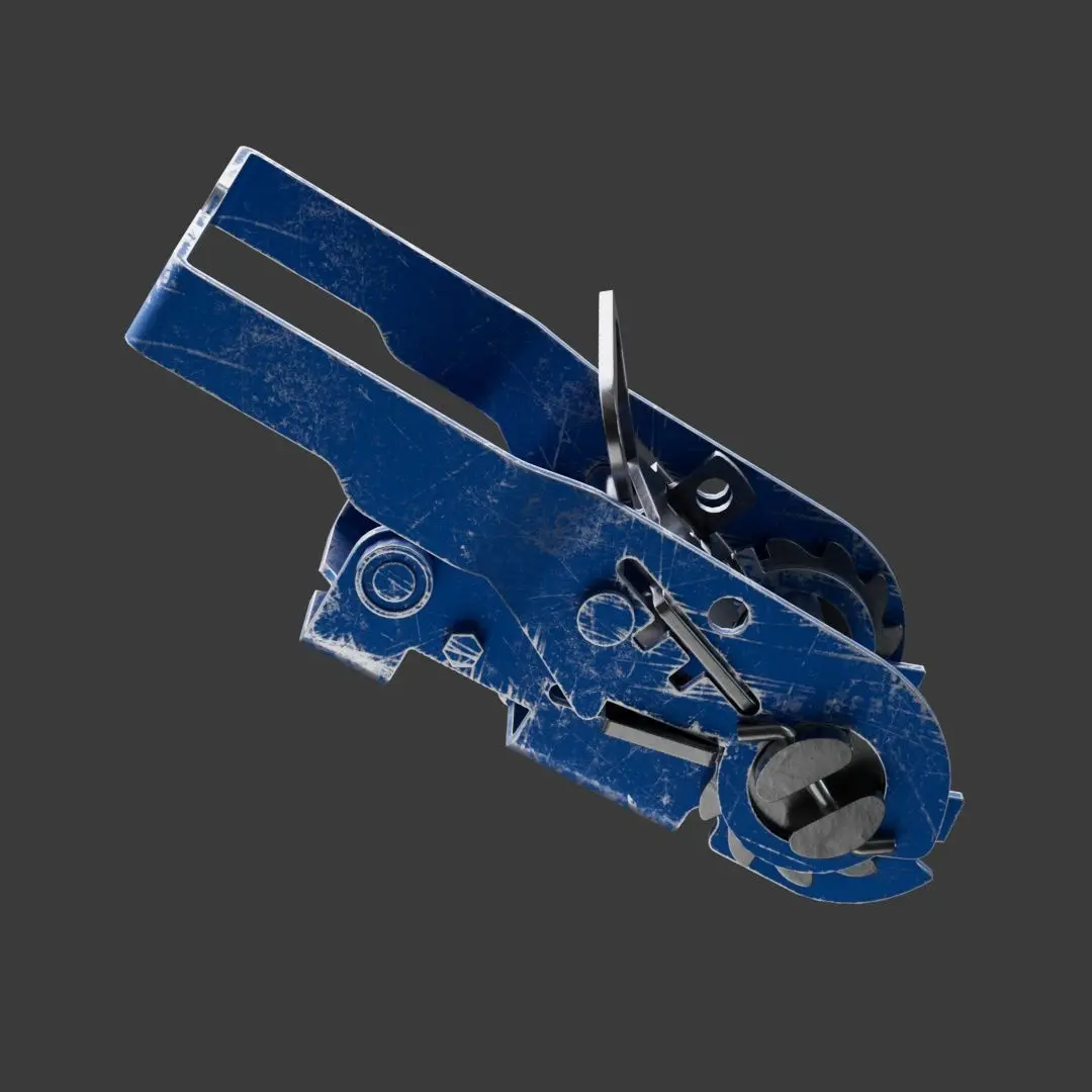 A 3D model of a ratchet strap included components:Ratchet Mechanism: This is the central part of the strap, featuring a handle and a gear system that allows for tightening and securing the strap. The model should show the intricate details of the ratchet teeth and the handle's grip.Strap: The long, flexible part of the ratchet strap, usually made of durable material like polyester. The model should depict the texture and weave of the strap, as well as its length and width.Color and Texture: The model should accurately represent the color and texture of the materials used, giving a realistic appearance to the ratchet strap.
