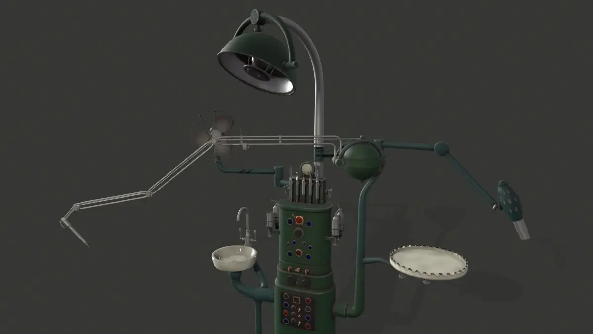 This high-quality, game-ready Rathbone dental unit is designed for modern dental clinics, hospitals, or medical training environments. Featuring a reclining dental chair, adjustable overhead light, delivery system, spittoon, and monitor arm, it brings realistic functionality and visual accuracy to any oral care scene. Fully compatible with Unreal Engine and Unity, this asset integrates seamlessly into real-time workflows and simulation projects.
