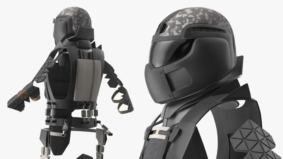 Ratnik 3 Powered Exoskeleton Frame with Helmet is a 3d model of an advanced exoskeleton suit designed for tactical and military applications, featuring high-grade protective elements and adaptive technology.