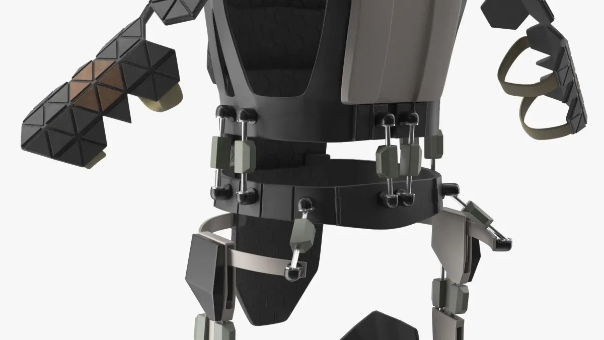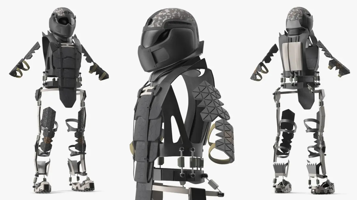 Crafted with lightweight composite materials, this exoskeleton offers superior mobility and defense. Its modular design includes retractable armor plating and integrated communication systems, allowing for versatility in various combat scenarios. The suit incorporates energy-efficient power systems and ergonomic interfaces for enhanced user experience.