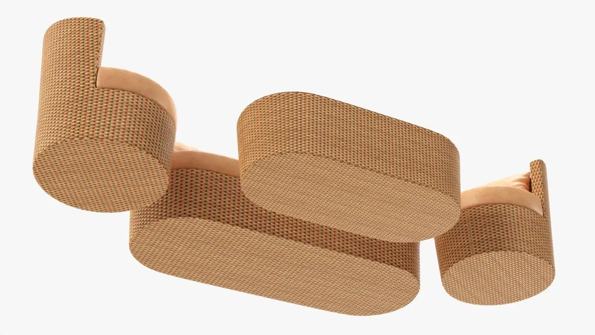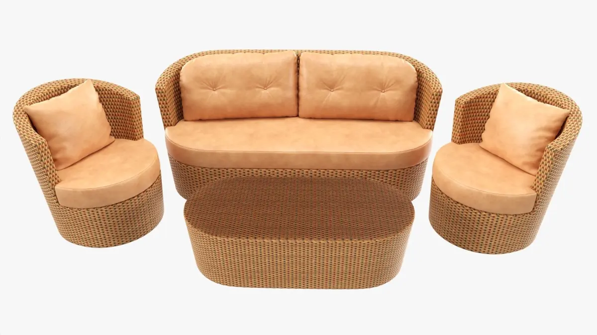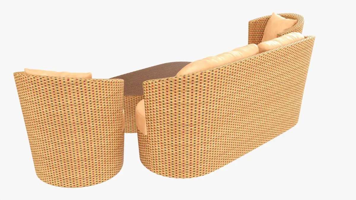Rattan furniture set 01 3D model