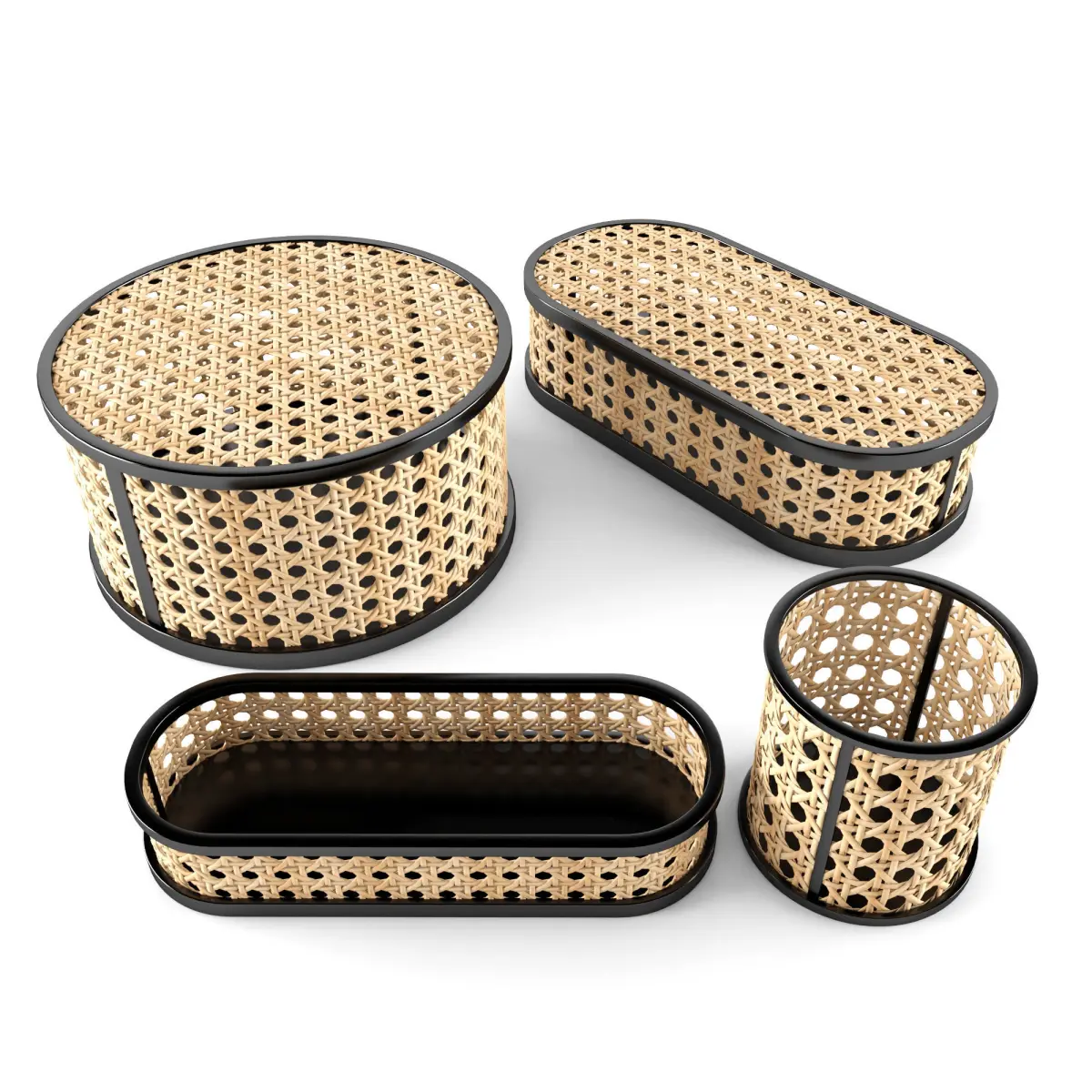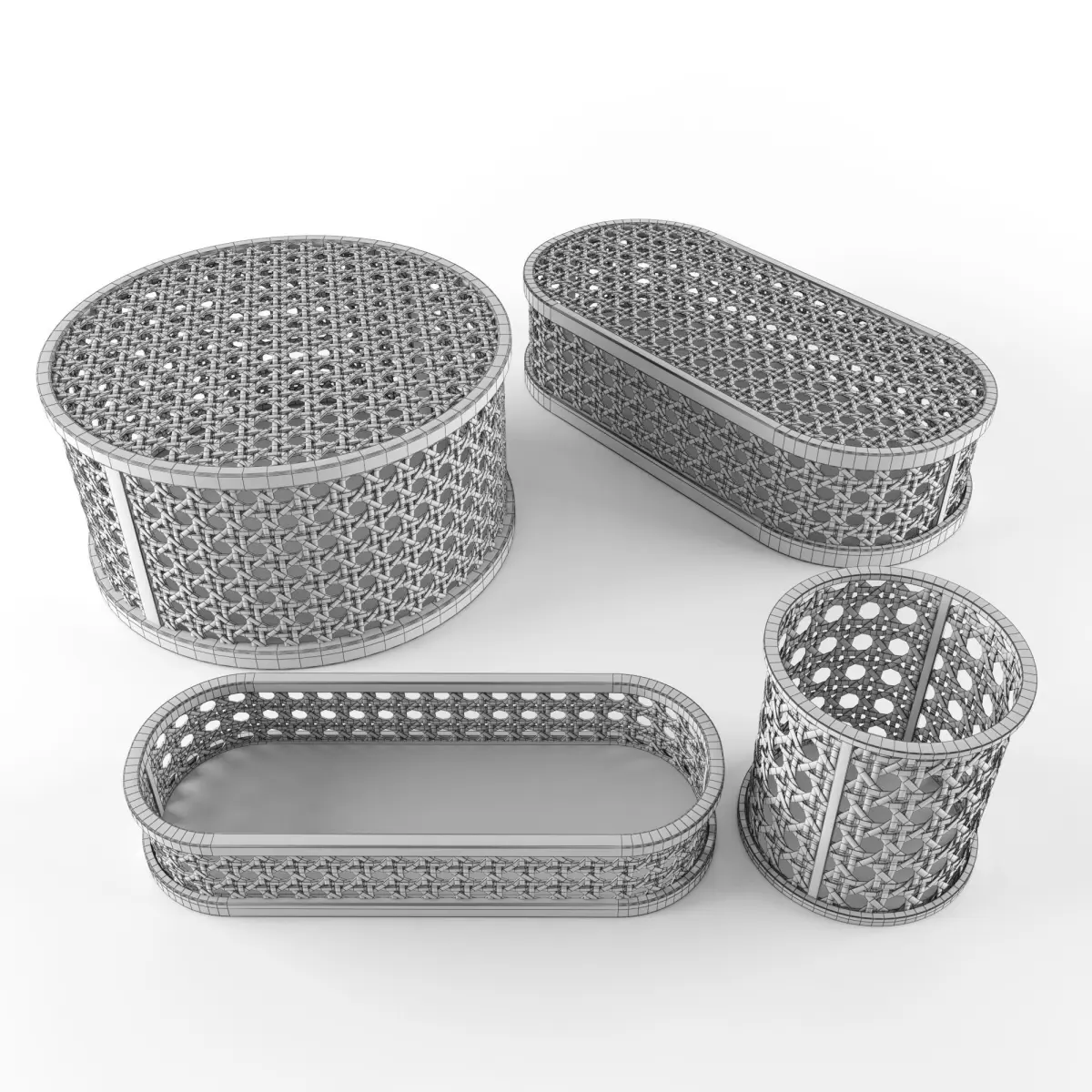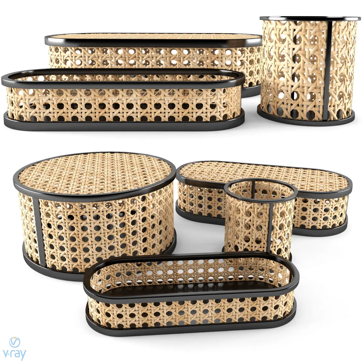 Rattan storage containersVery realistic model, sure knotsPolys: 145.047Verts: 142,954Round Container - 21cm x 11cm highOblong Container - 28cm x 13cm, 7cm highOblong Tray - 22cm x 8cm, 4.3cm highPen Pot - 9.5cm high x 8cm wideWebsite: https://anewtribe.co.uk/home-accessories/rattan-storage-containers-3