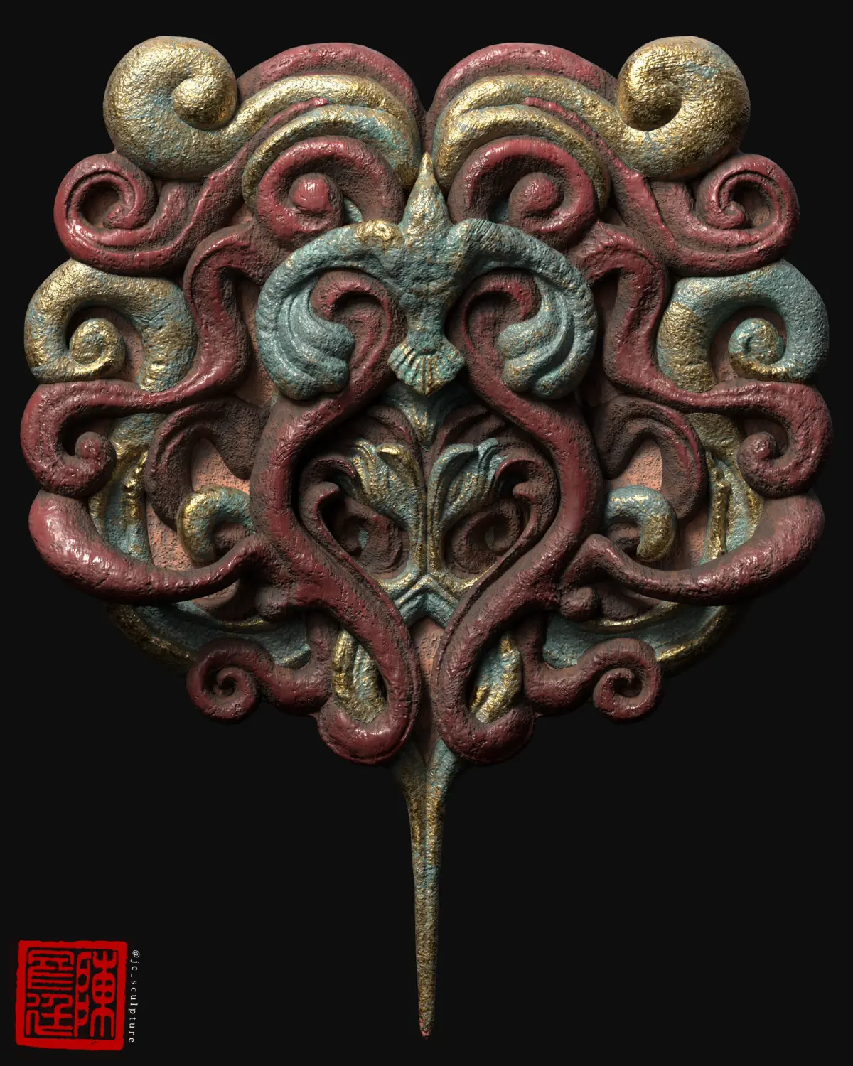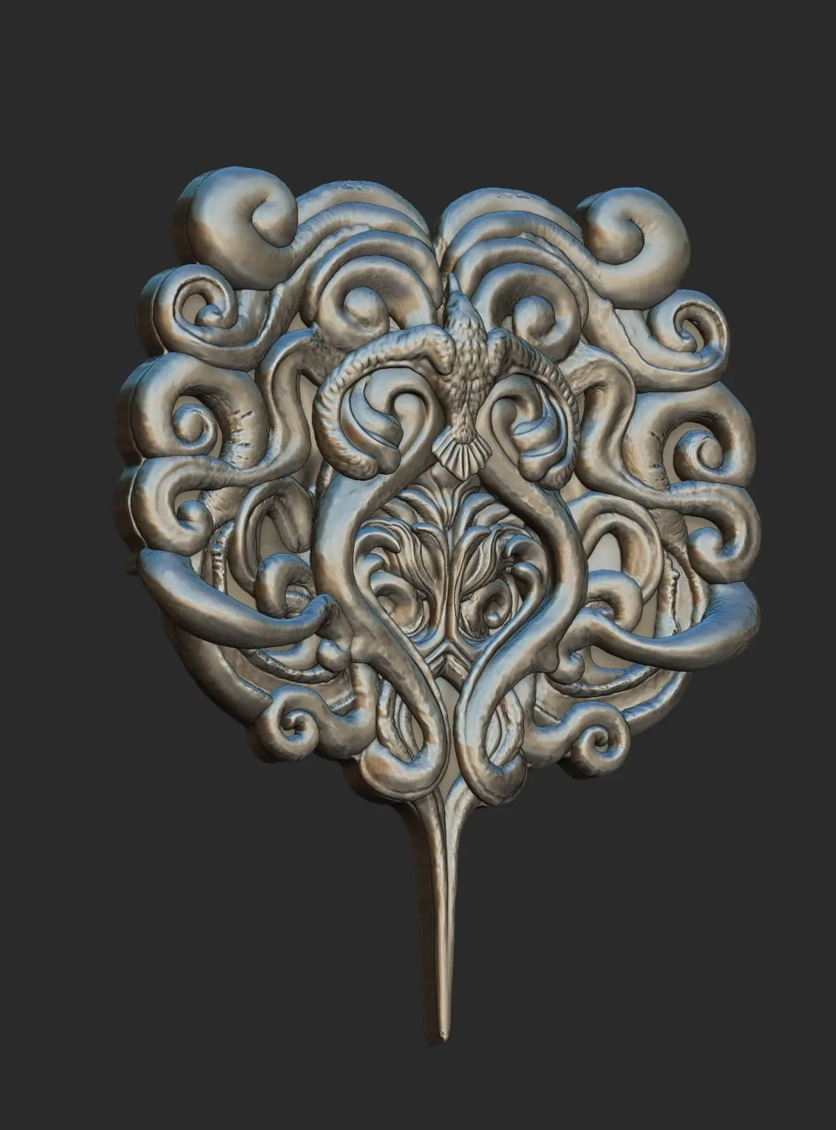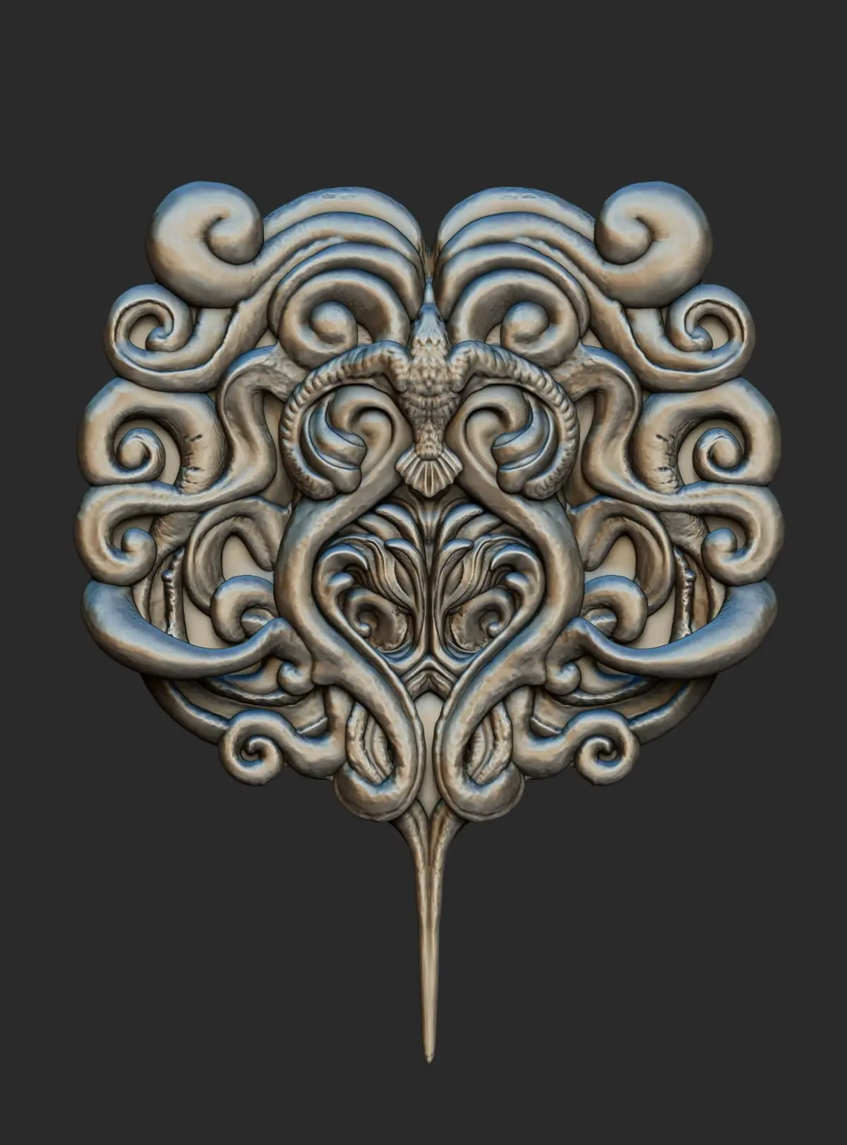 My own design based on a raven or bird. An interesting model of a relief sculpture for art, props, game character, movies or editorial use.