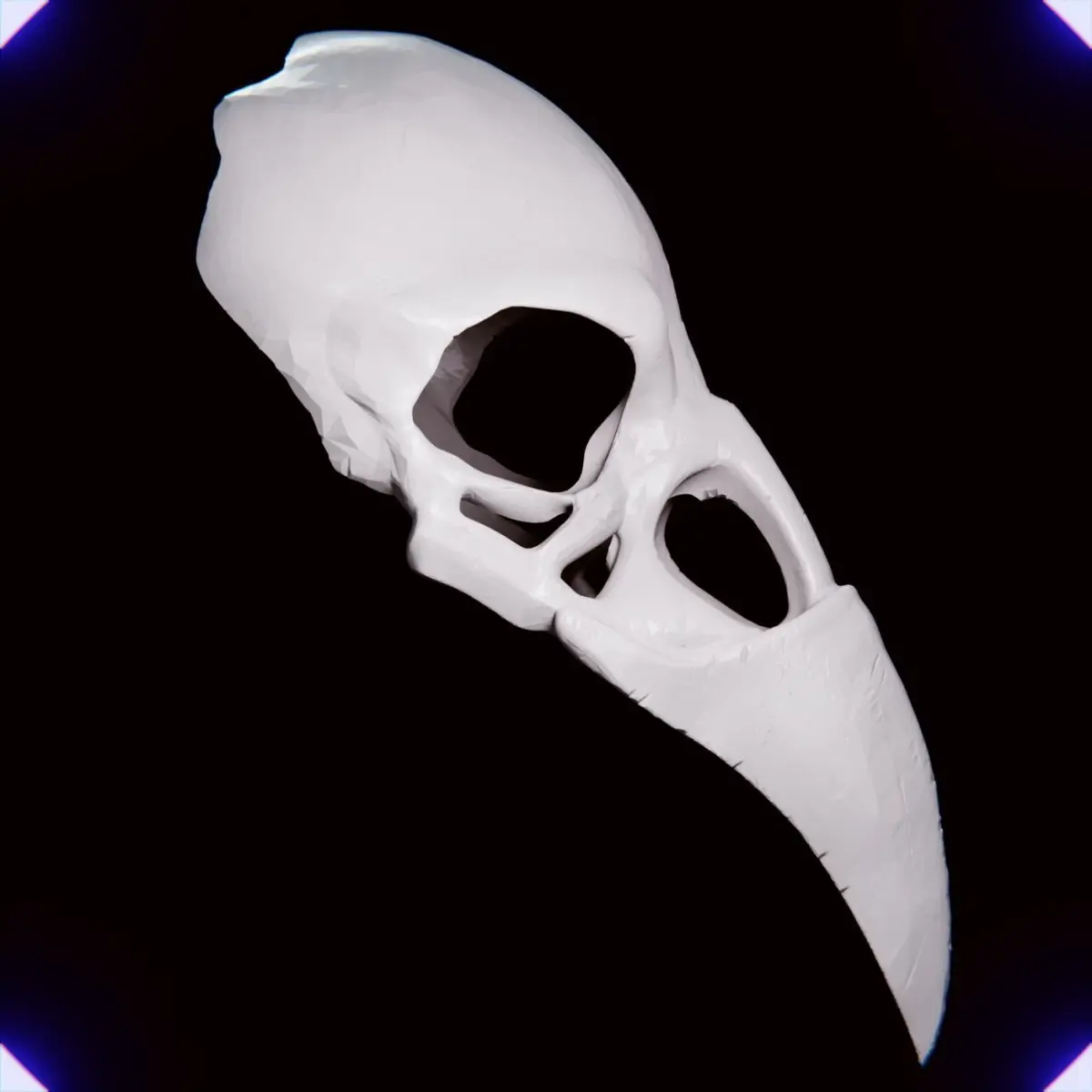 Mascara de Craneo de Cuervo, cubre medio cabeza, es solida y no tiene aditamentos para poner correas, yo recomiendo hacerle unos pequeños agujeros a los lados para poder pasar algun hilo para poder colgarla.Pueda imprimirse con 4 o 5 paredes con una boquilla de 0.4mm.talla Adulto.