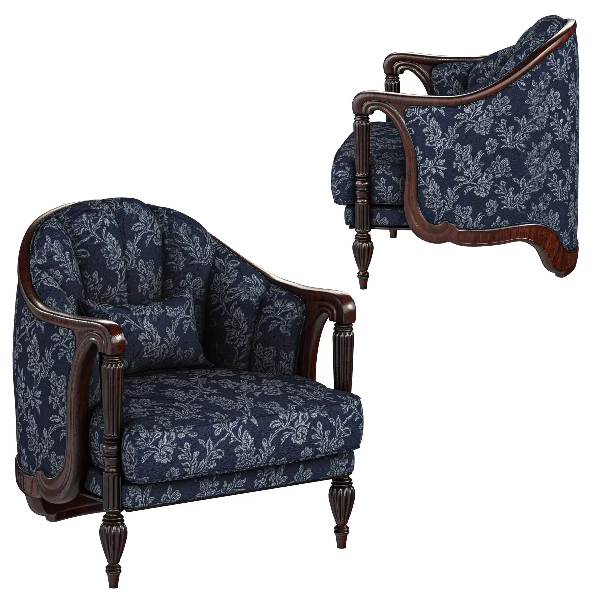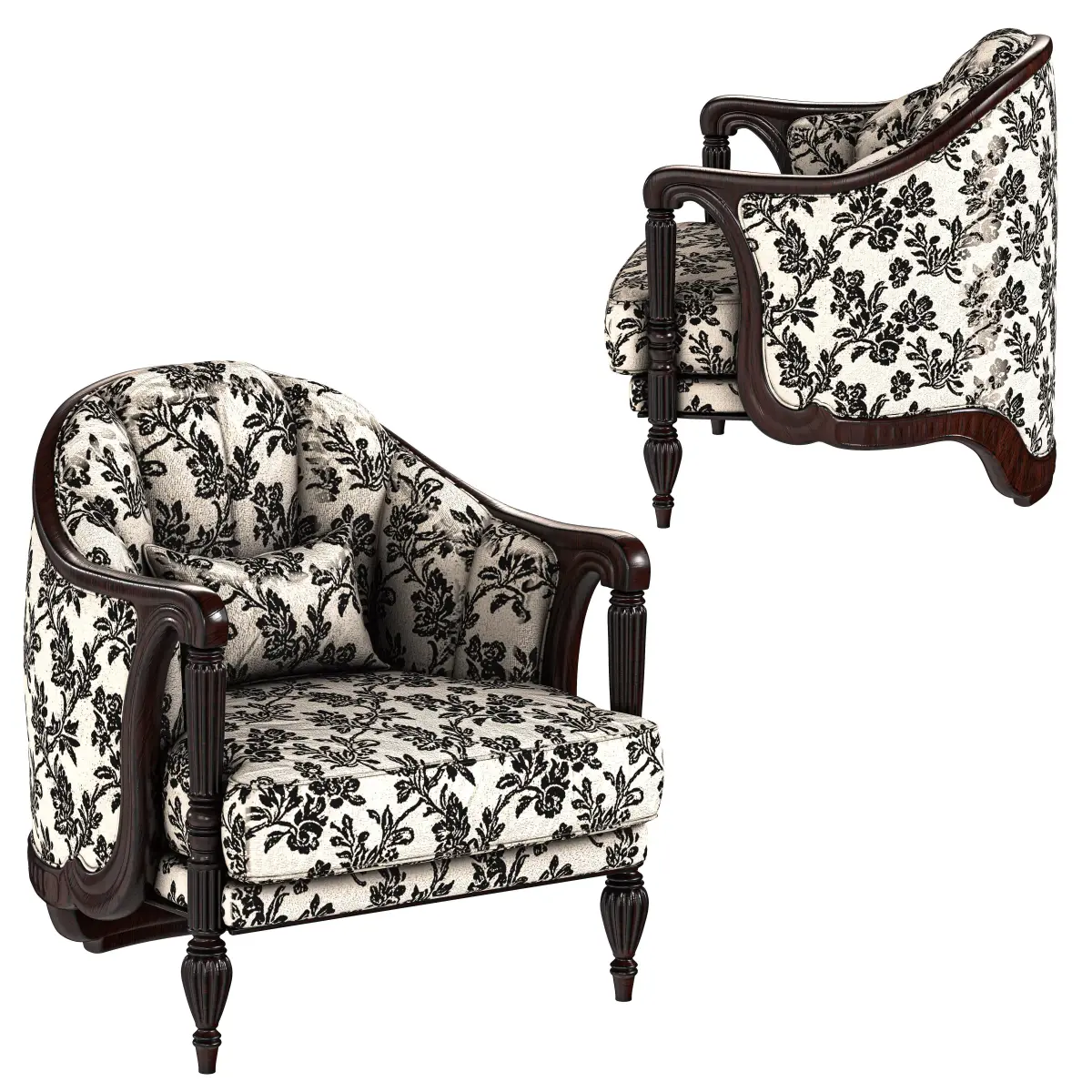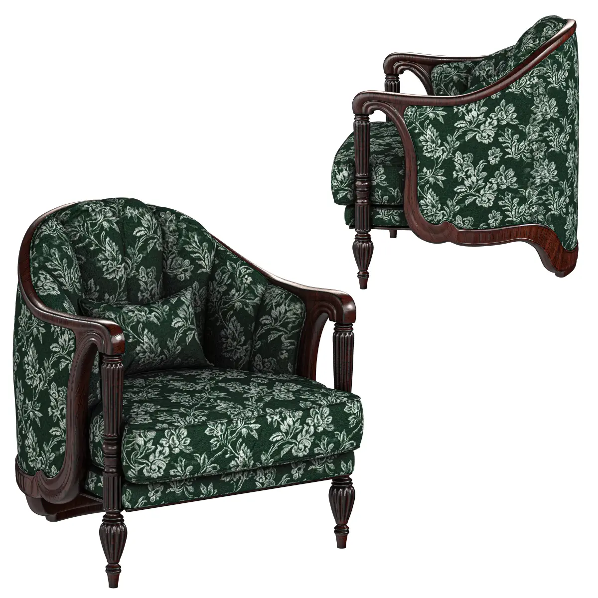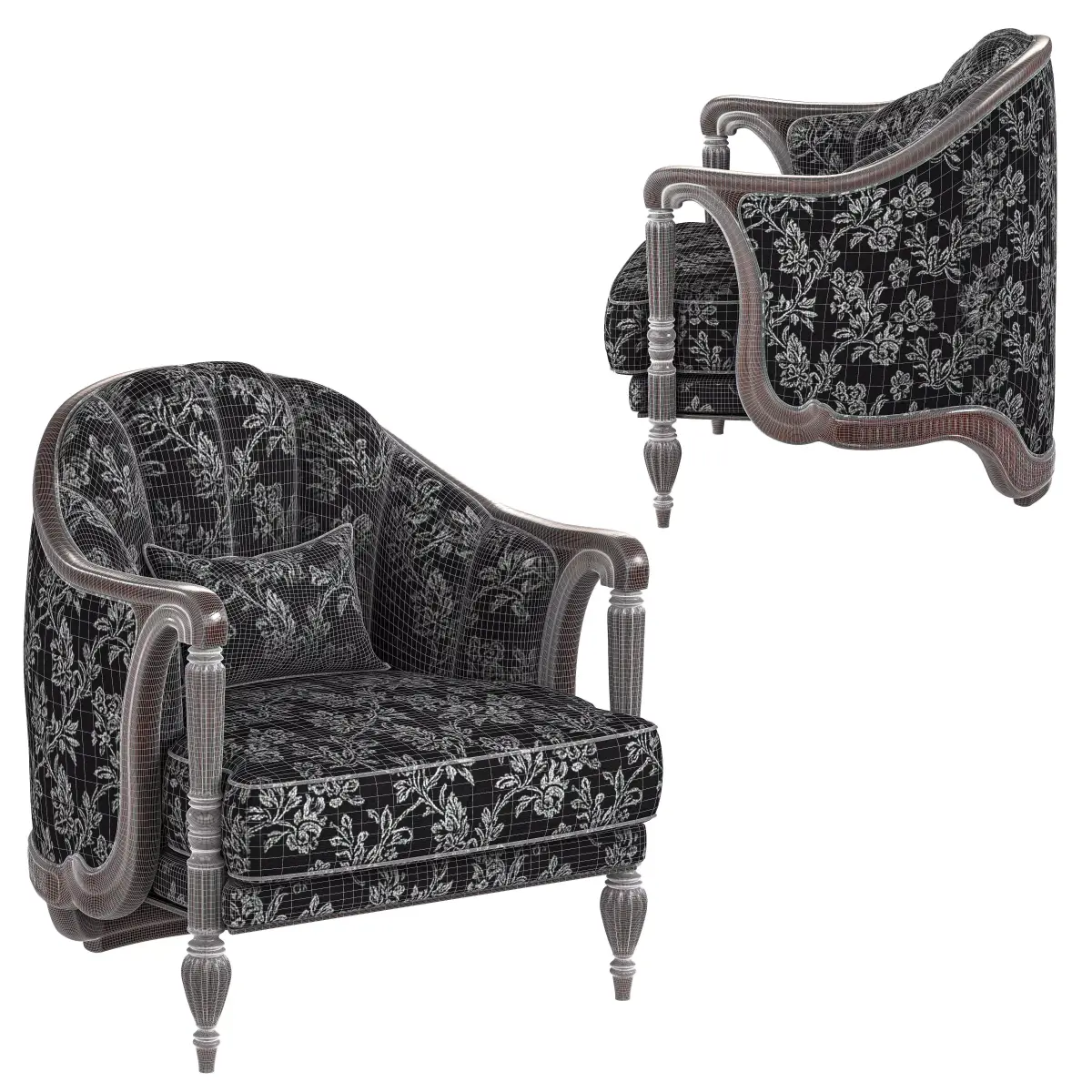 Enhance your interior visualization with this high-quality, classic armchair featuring an exquisite floral pattern and polished dark wood finish. This model is perfect for luxury living room renders, Victorian-style interiors, or hotel lobby scenes.