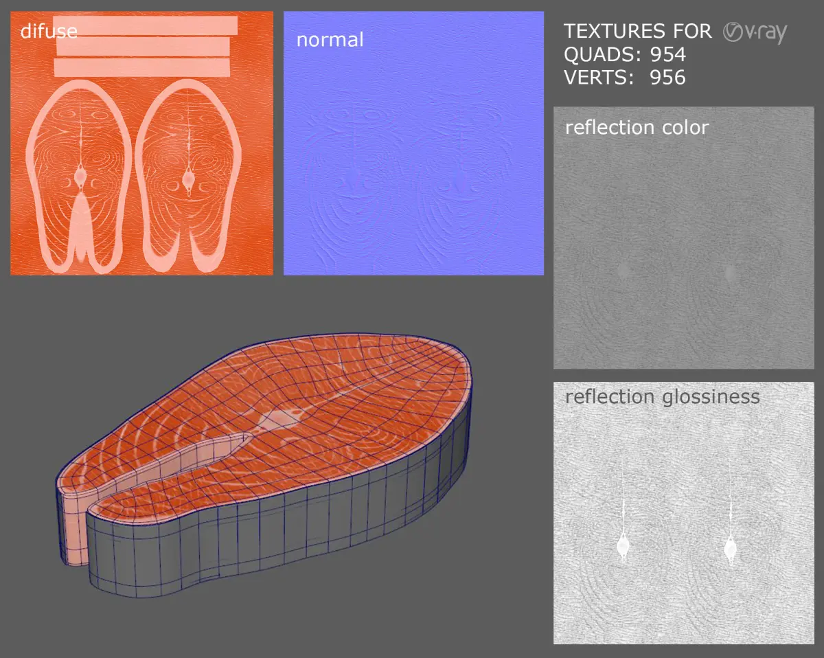 This is a 3d model of a raw salmon steak.