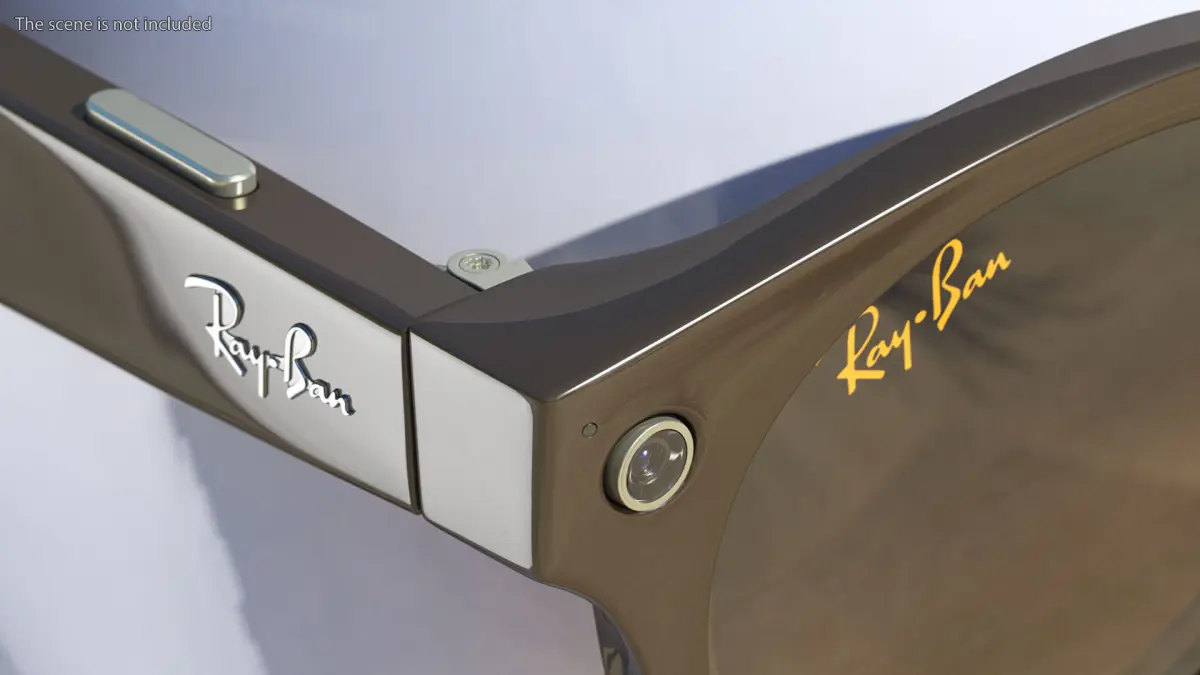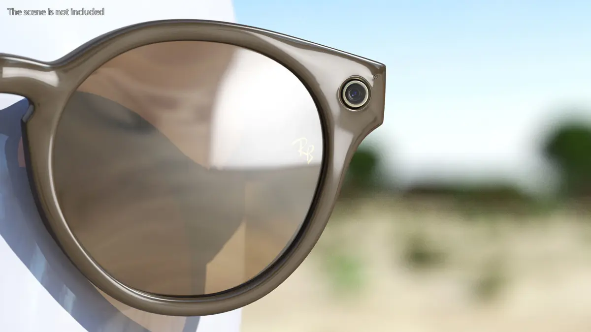 Mobile, futuristic, hi-tech Ray-Ban smart glasses vision accessory which has hi-tech digital processor chip, touch controls feature, built-in video/photo camera and special speakers/microphone. Portable, contemporary electronics smart glasses equipment which can be used for calls via a paired smartphone and for video/photo recording.For sun protection accessories, video equipment, ophthalmology, sun protection fashion accessories, vlog equipment, sun light protection eyewear, sun light protection eyewear, spy devices, filming equipment, ophthalmic optical equipment, smart recording equipment, sun protective equipment, smart photo cameras, or digital gadgets promotional projects.