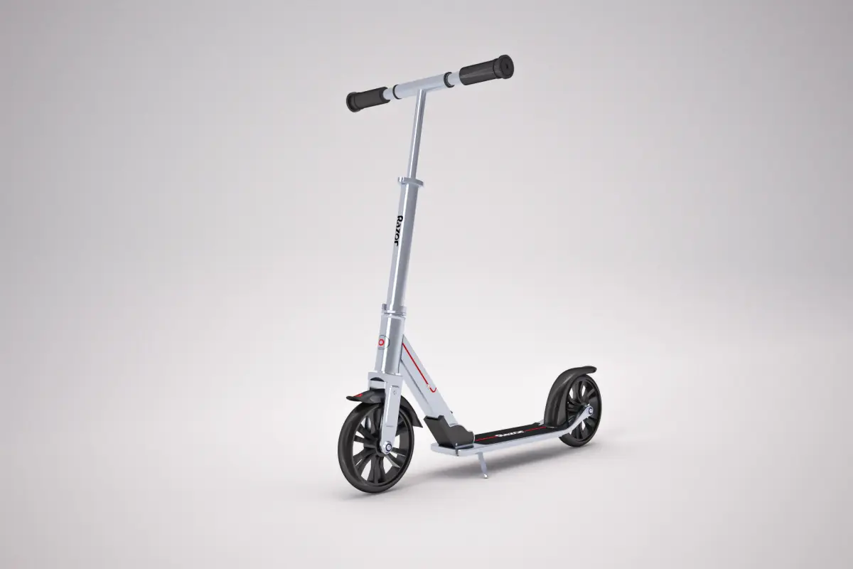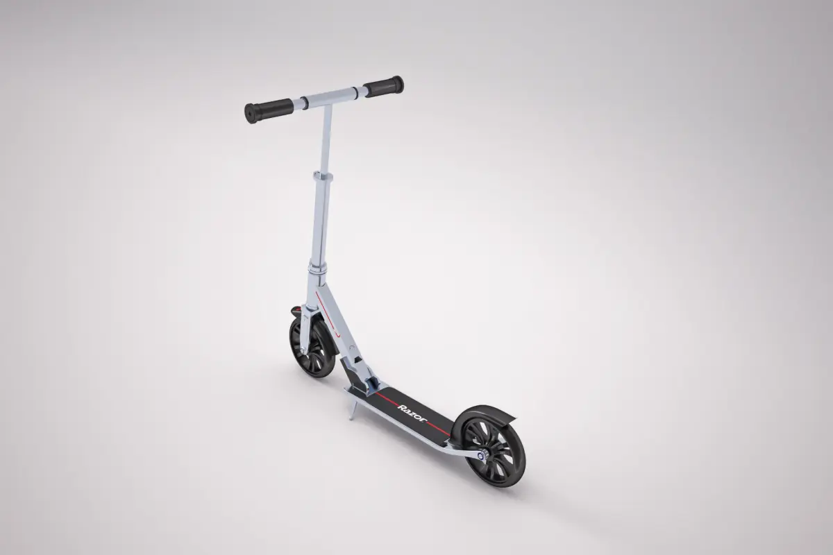 Razor A6 Kick Scooter High detailed model created by Untitled.C4D Ready to render at Cinema 4D with VRAY. It was rendered at Cinema 4D R20 with Vray 3.7.